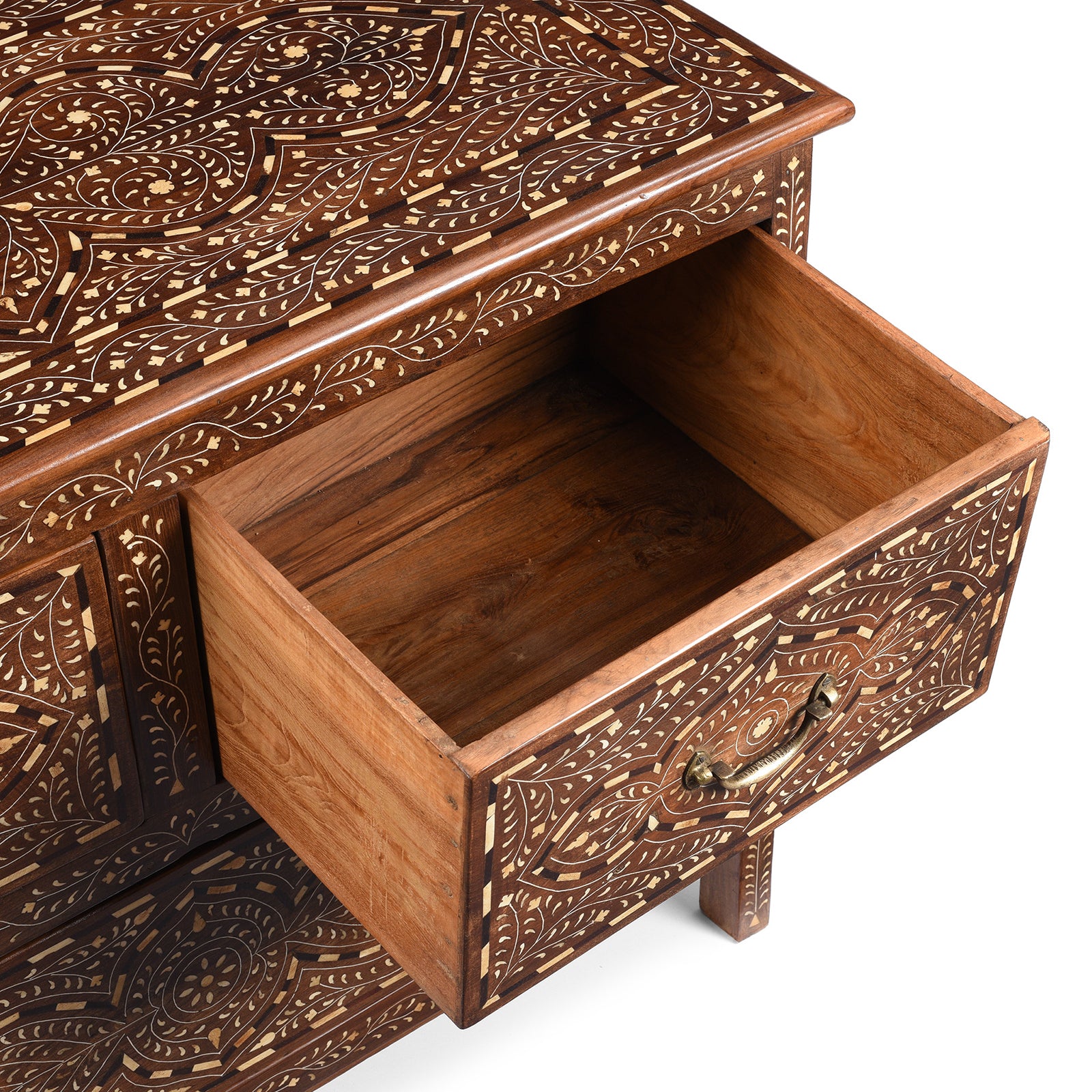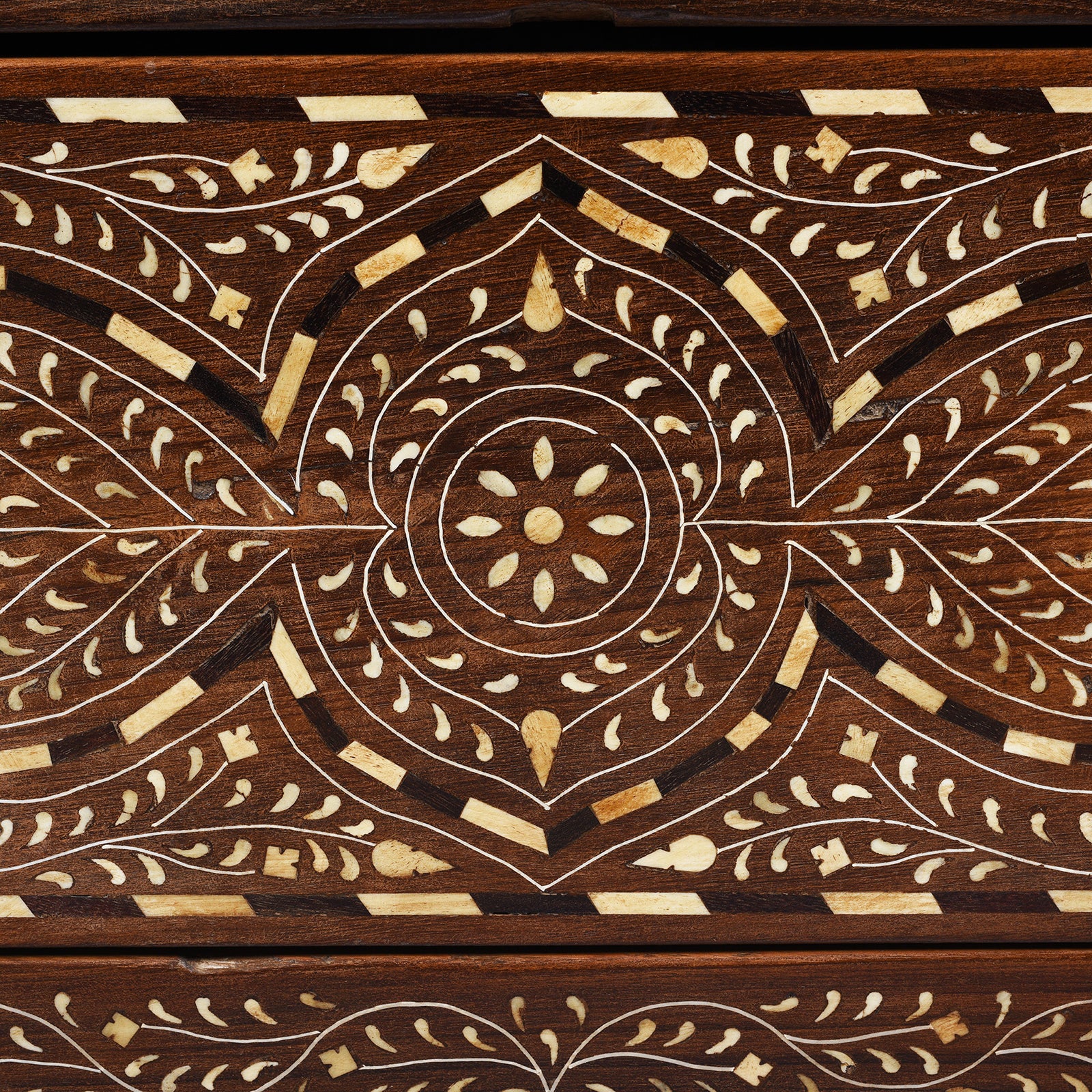 Drawer Detail From Vintage Indian Chest Of Drawers - With Later Bone Inlay Work Ca 1920 | Indigo Antiques