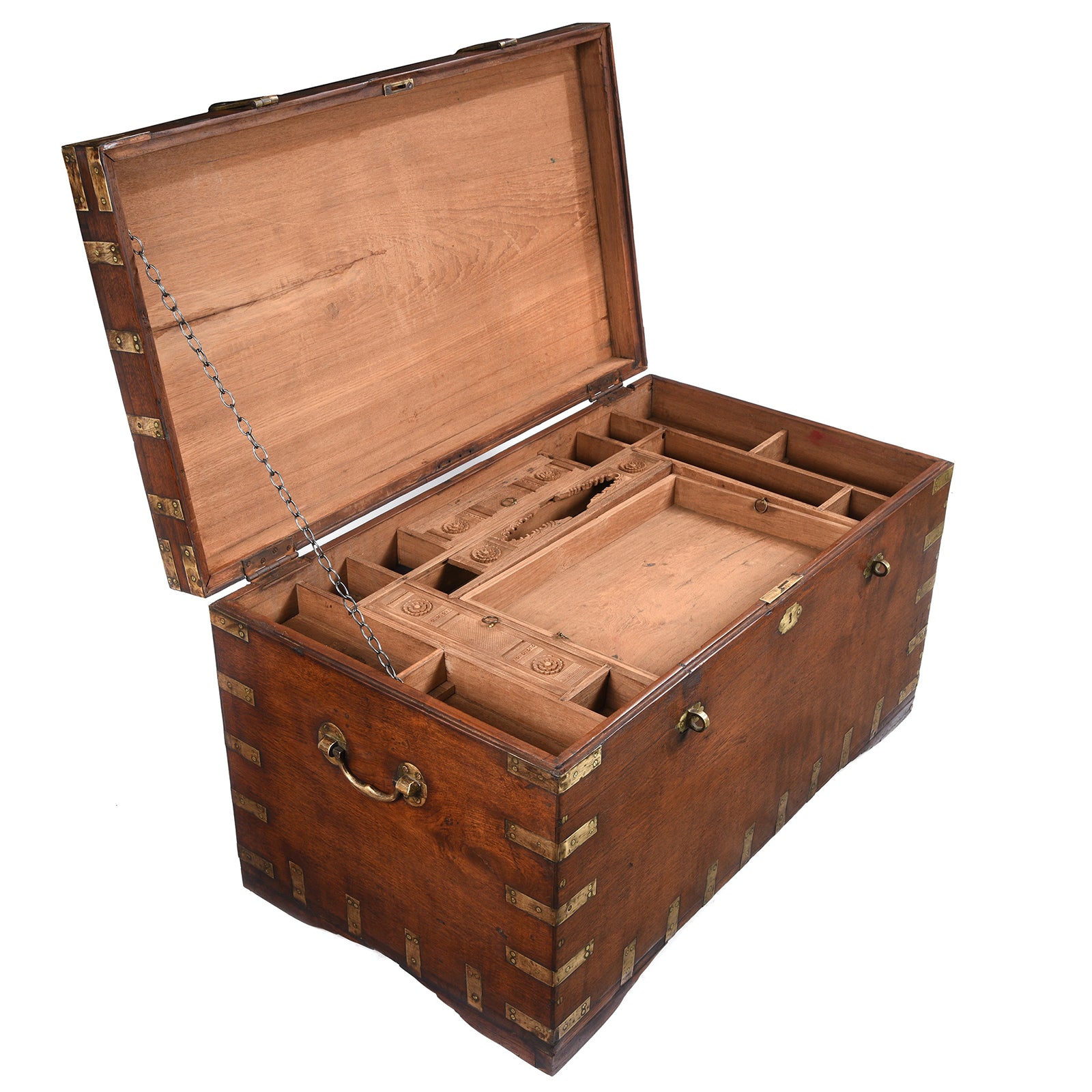 Brass Bound Teak Military Chest From Hyderabad -19th Century