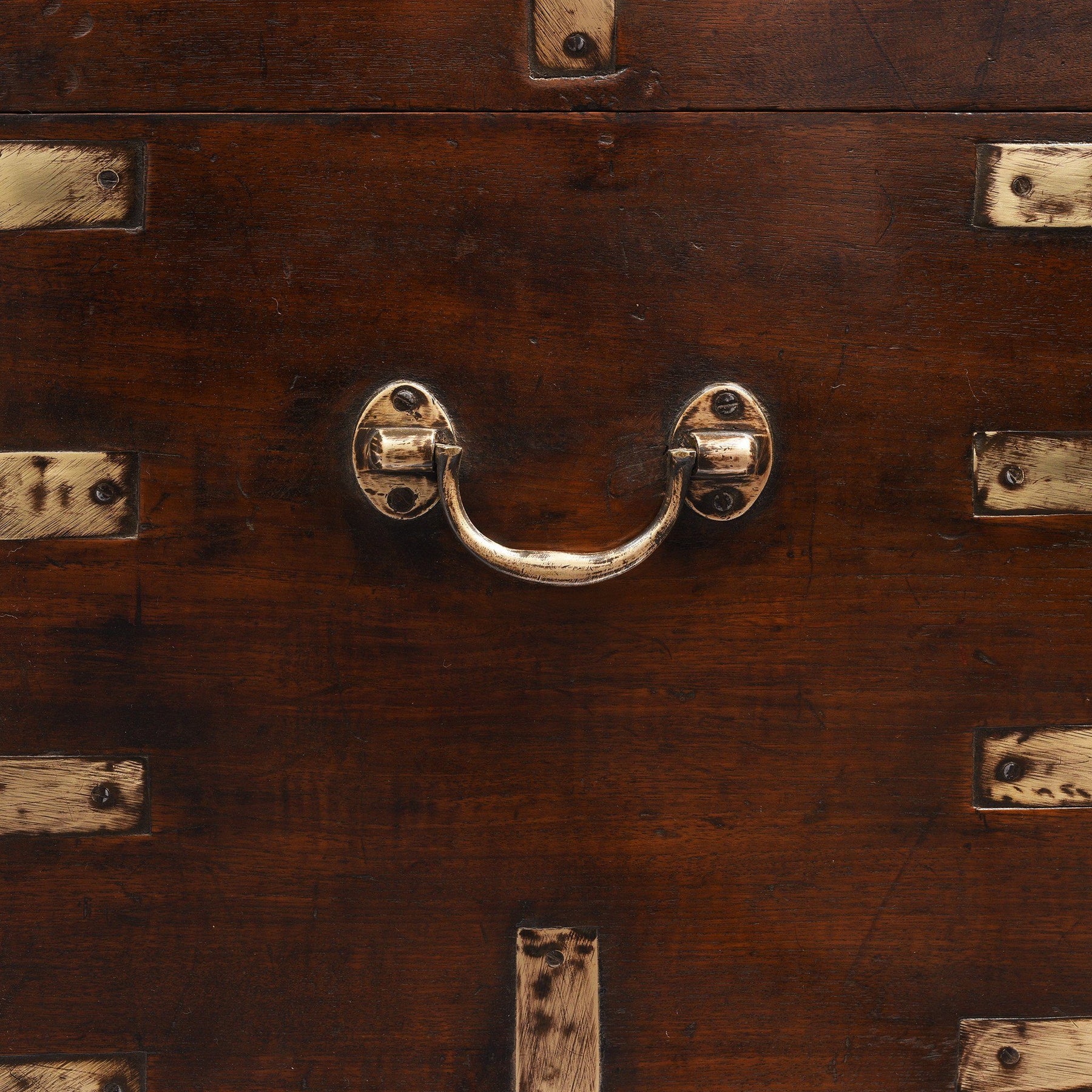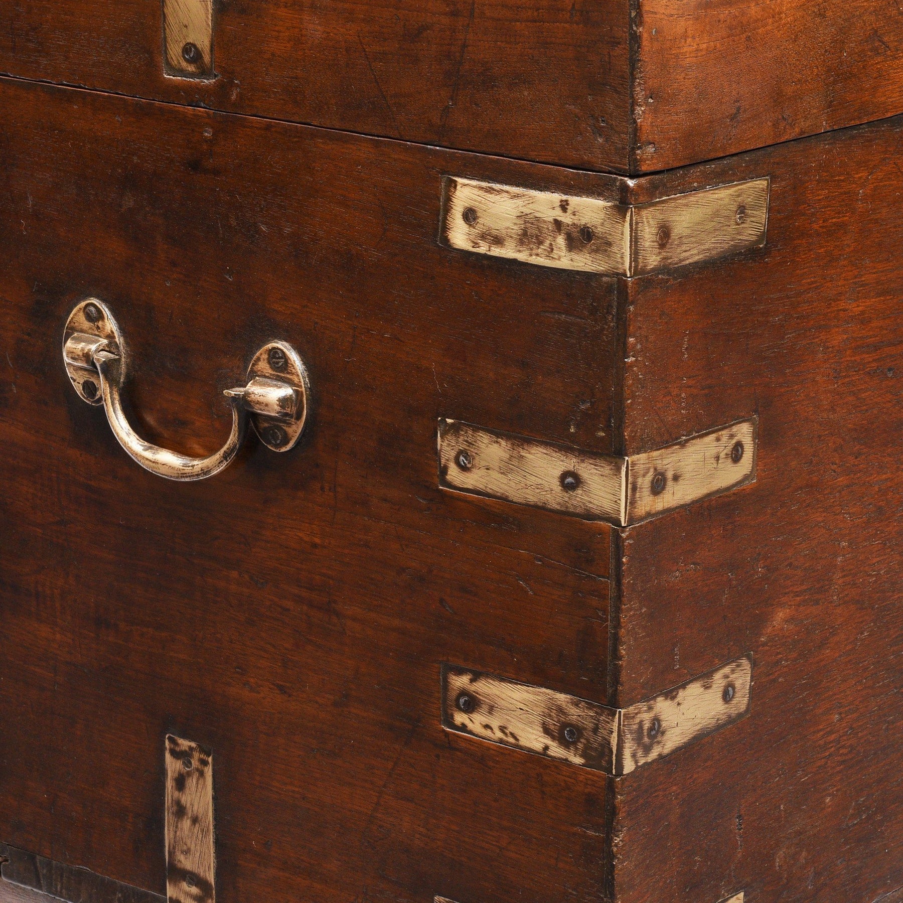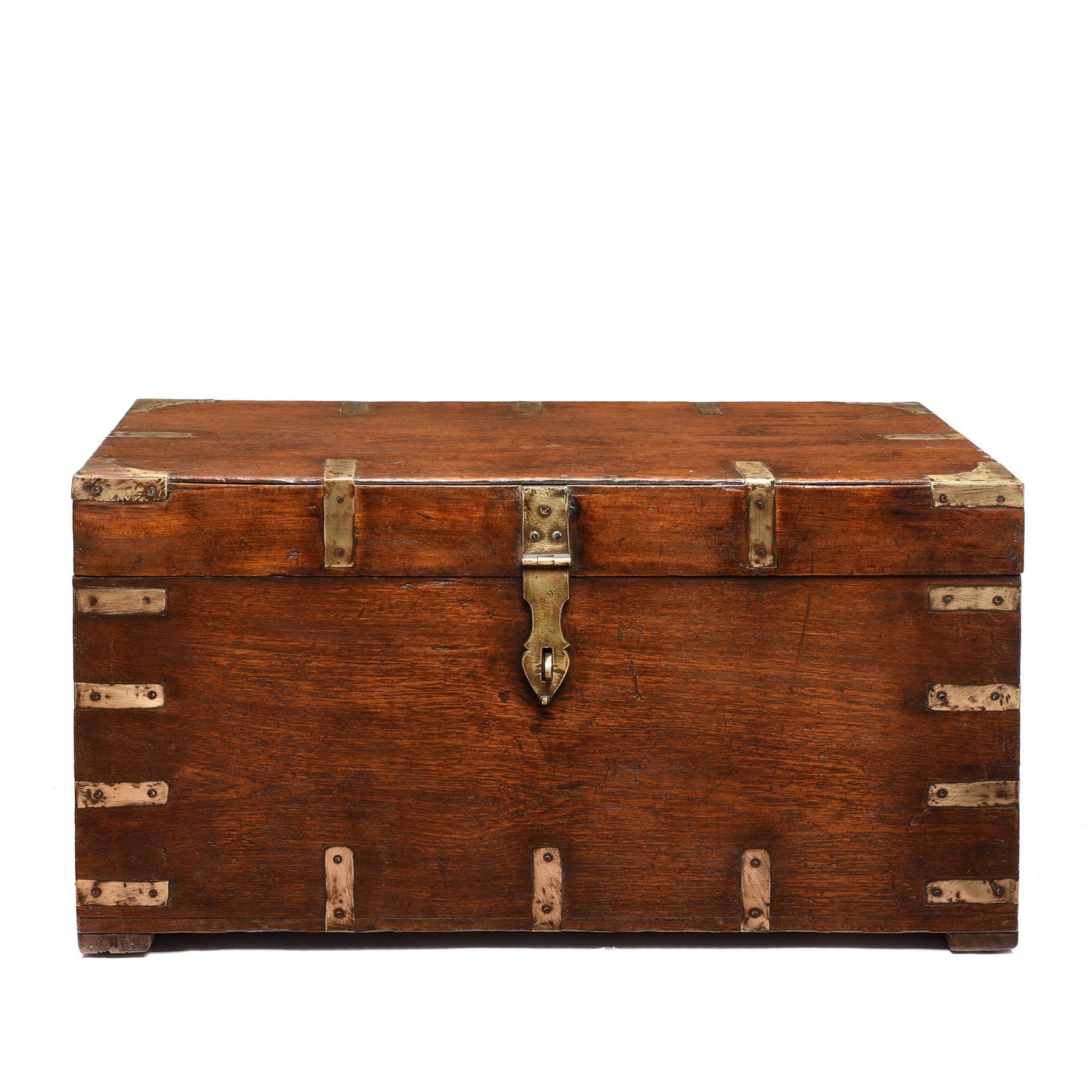 Brass Bound Indian Teak Military Chest From Rajasthan - 19thC