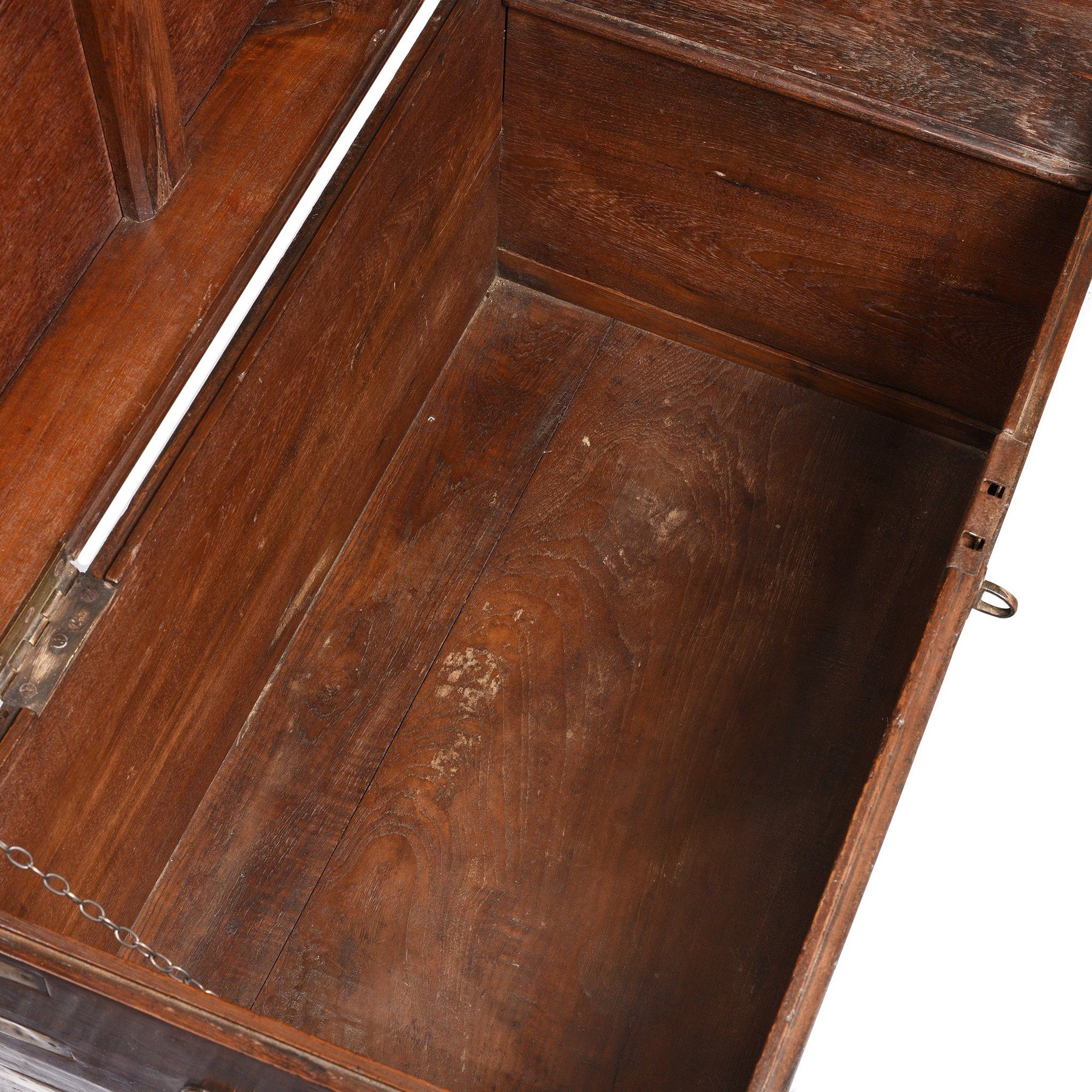 This Indian chest is made from teak wood and has a secret compartment accessible via the internal candle box.