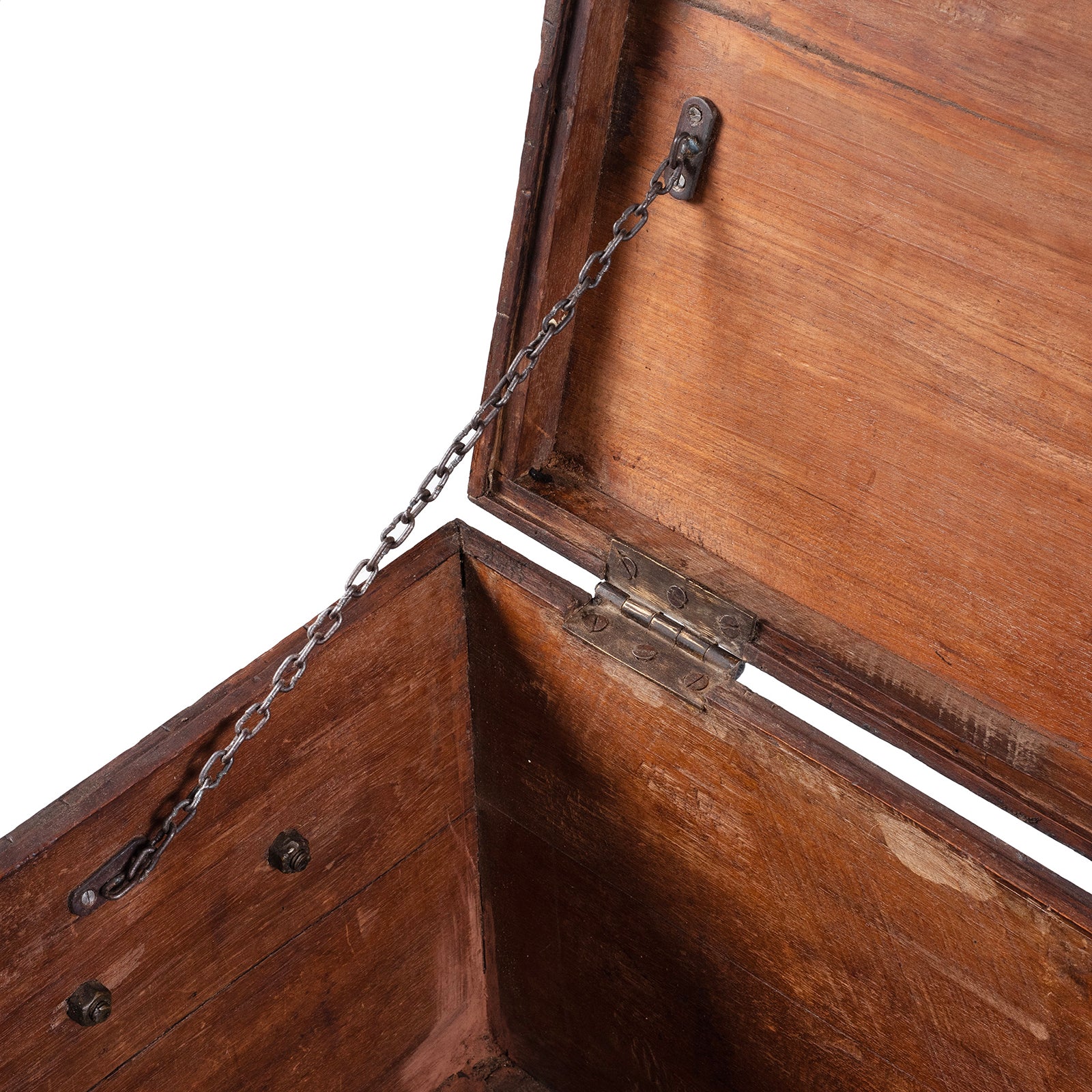 Chain Detail From 19th Century Brass Bound Anglo Indian Teak Military Chest With Original Fittings