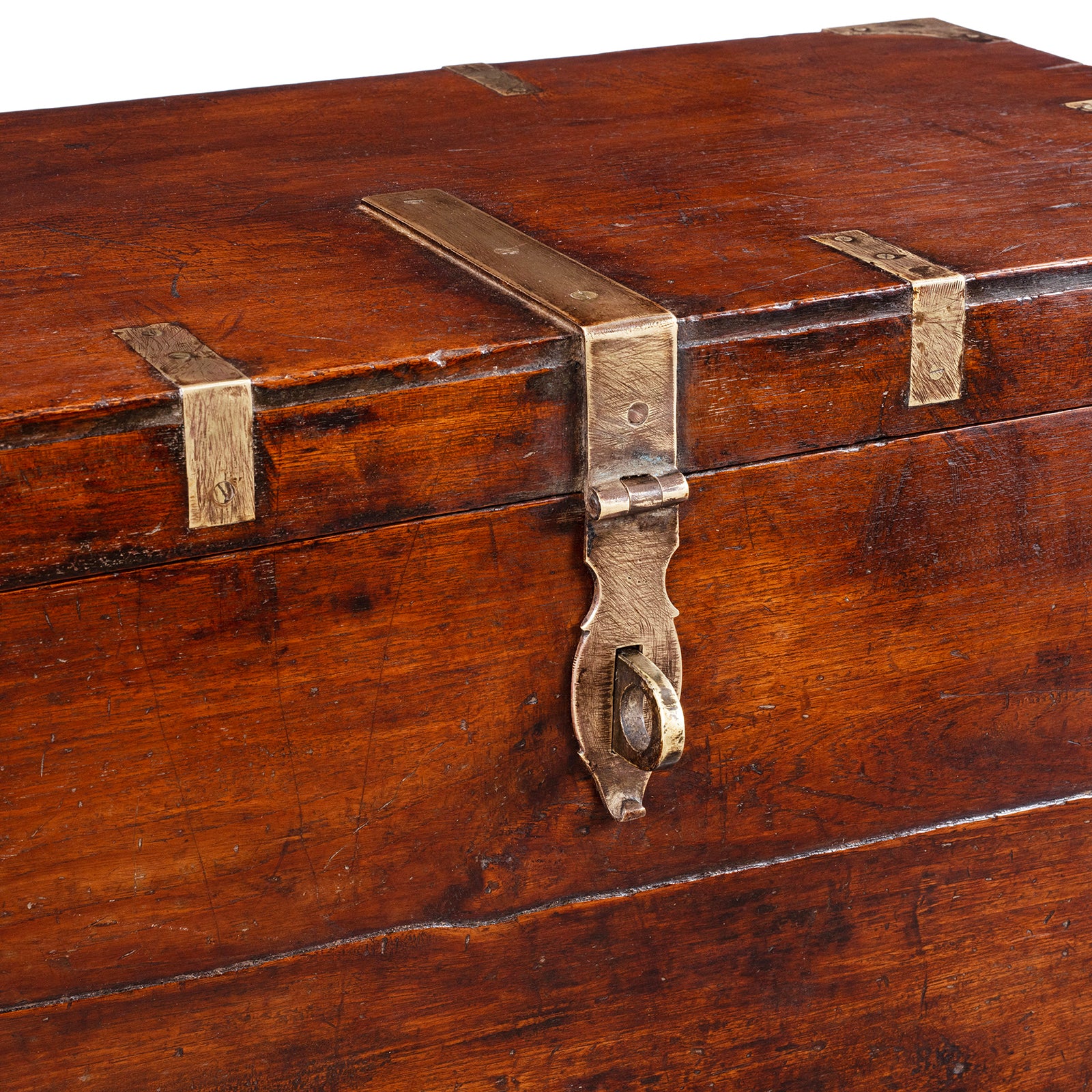 Back Of 19th Century Brass Bound Anglo Indian Teak Military Chest With Original Fittings