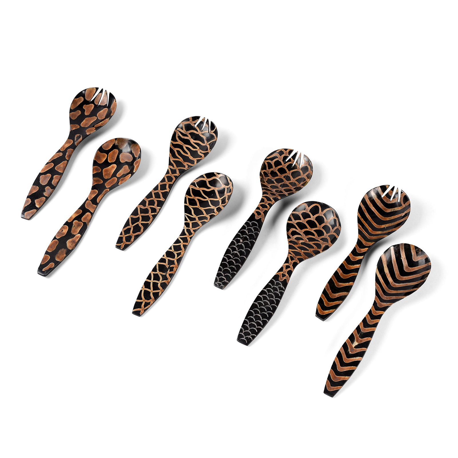 Indulge in a touch of sophistication with our buffalo horn salad servers, handcrafted in India from responsibly sourced buffalo horn. Perfect for serving up your favorite salads, each piece is hand finished, bringing a touch of luxury to your dining experience. Elevate your table setting with these elegant and exclusive servers made by hand.