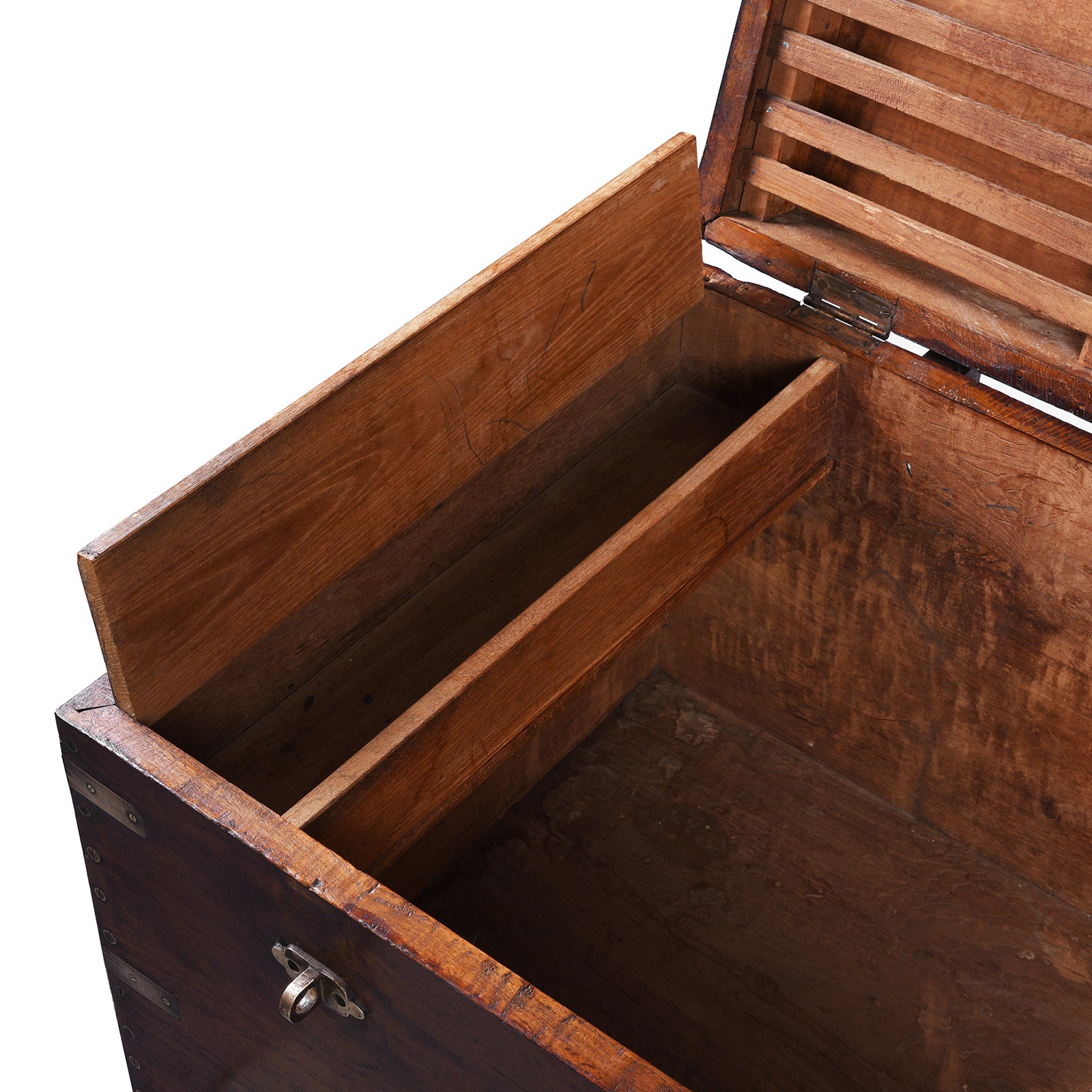 Interior Of Antique Burmese Teak Brass Bound Military Campaign Chest | Indigo Antiques