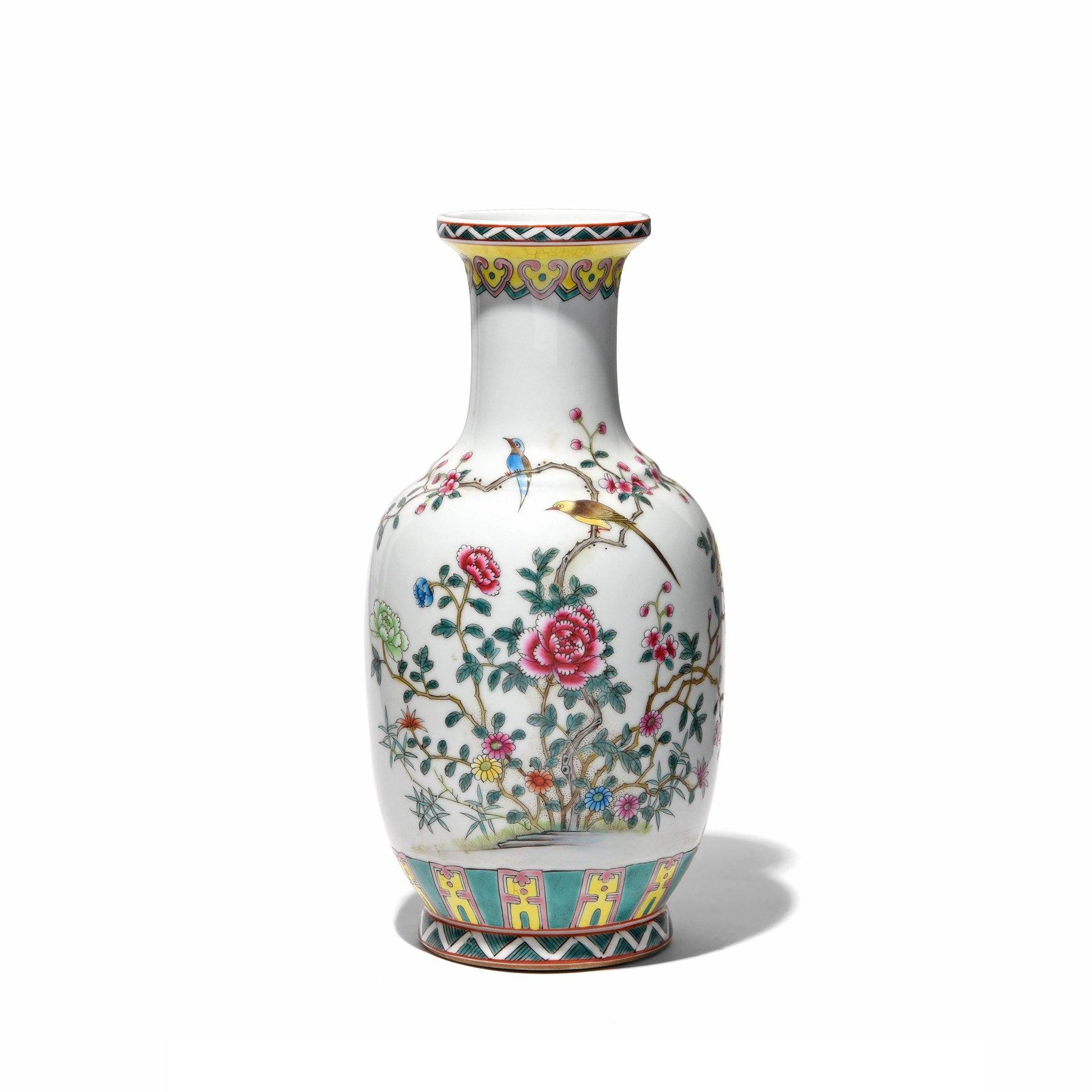 Porcelain Rouleau Vase - Famille Rose Design | Indigo Antiques