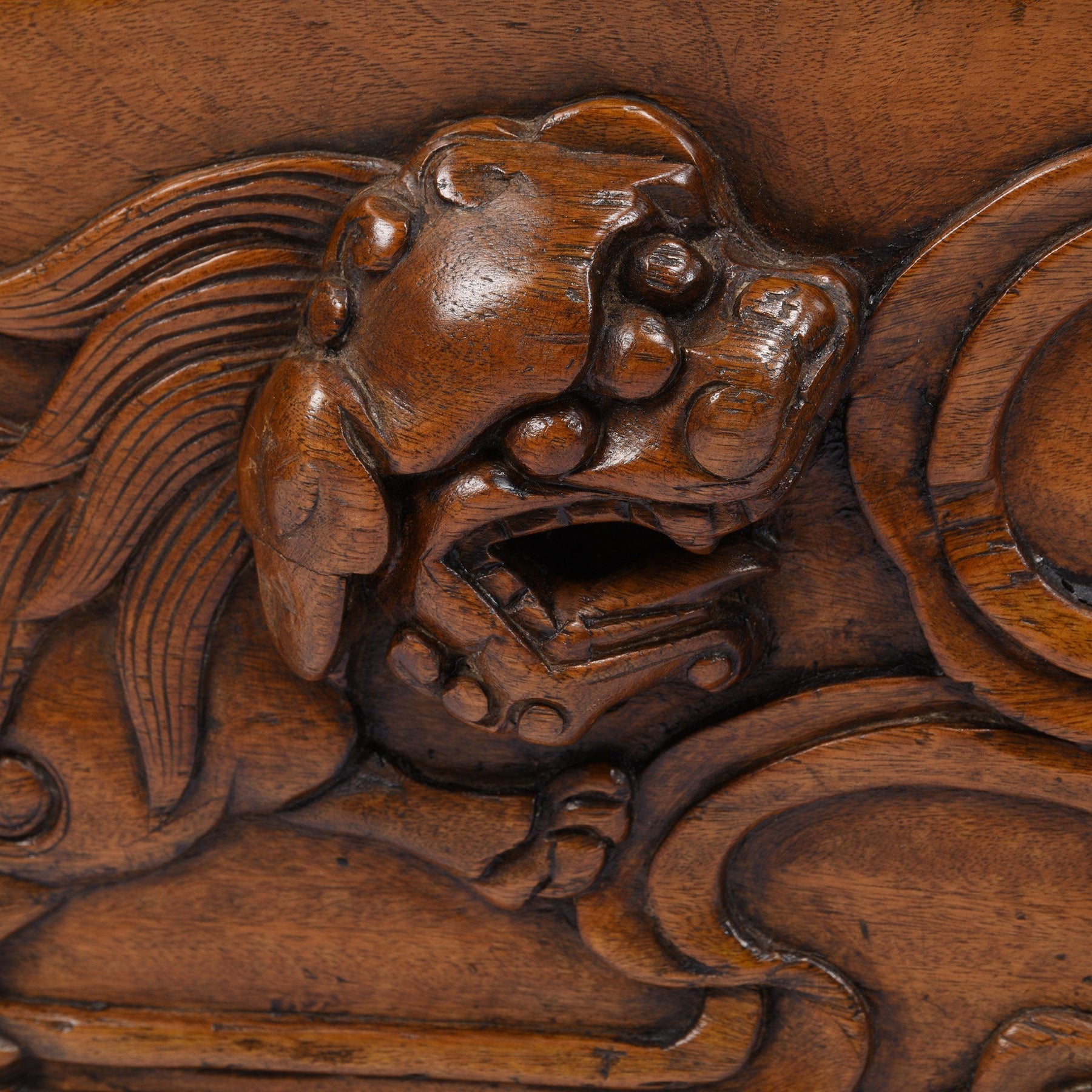 This is a fabulously large antique Chinese camphor trunk from the 19th century. This original piece is carved from large planks of camphor wood and has its original brass hardware. It is from Hebei province in Northern China, either Beijing or Tianjin city. Camphor or changmu was the preferred wood of the wealthy, the smell of camphor discouraged moths and other insects, which is why it was used all around Asia and the east to make cabinets and trunks.