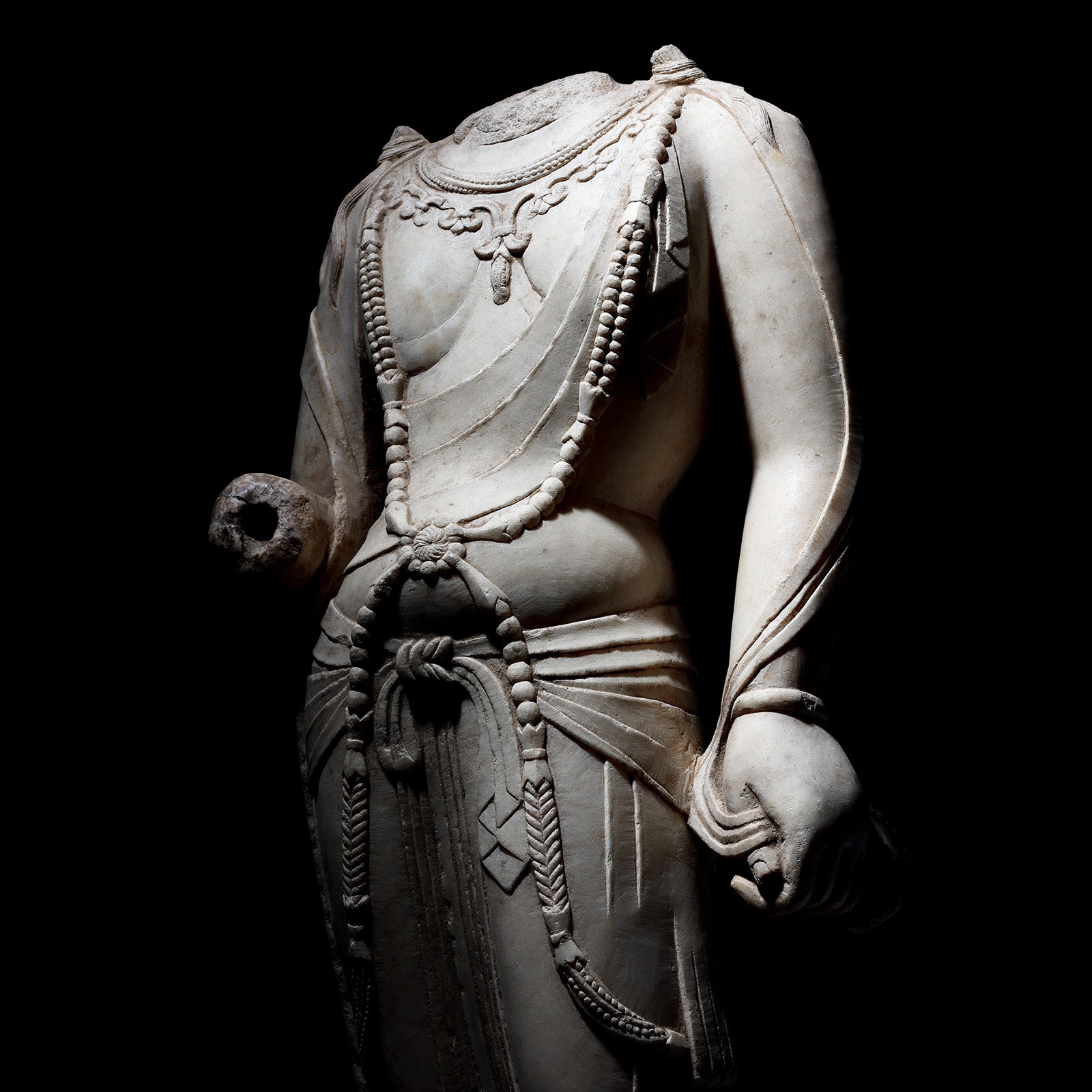 Detail from Reproduction Carved Marble Guanyin Torso | Indigo Antiques