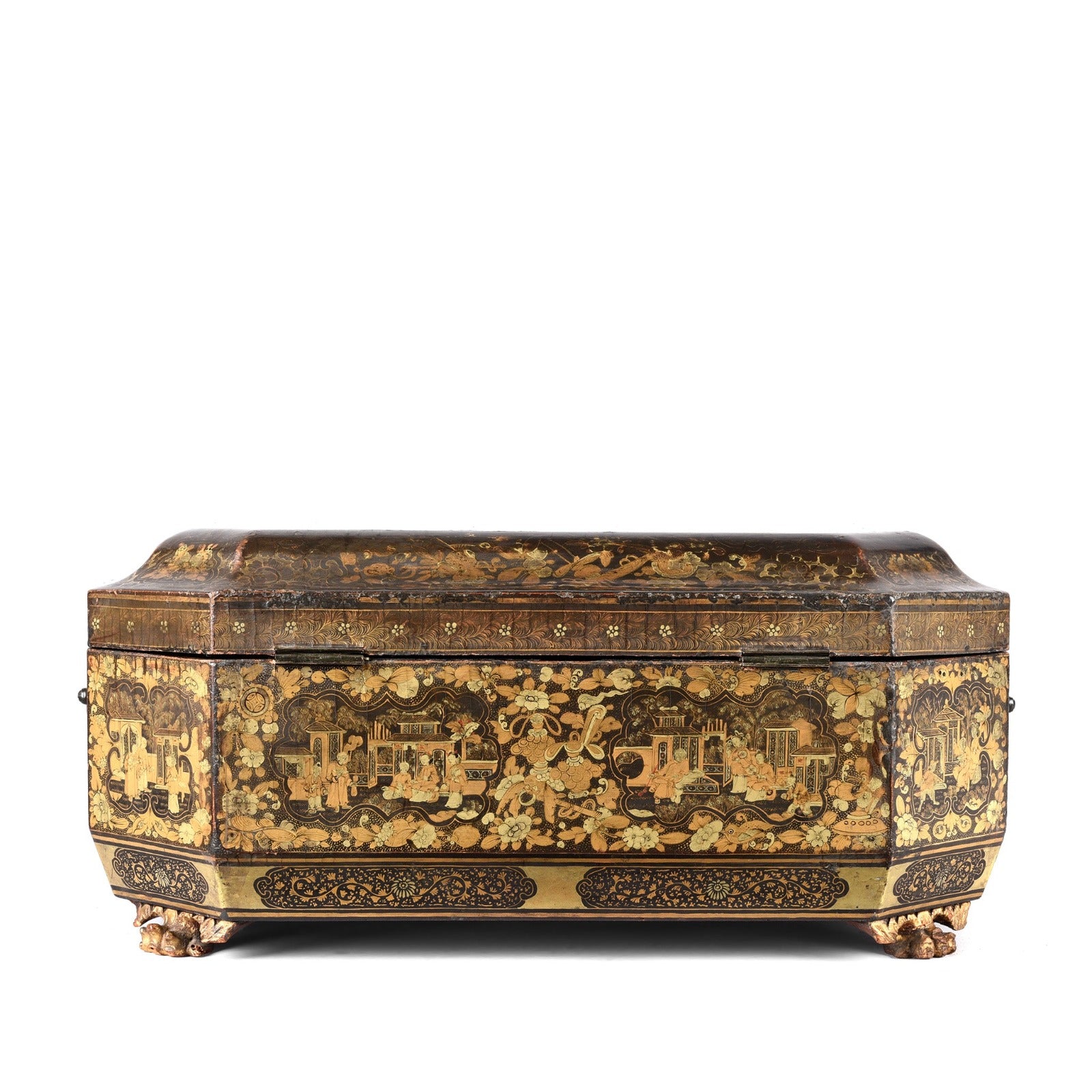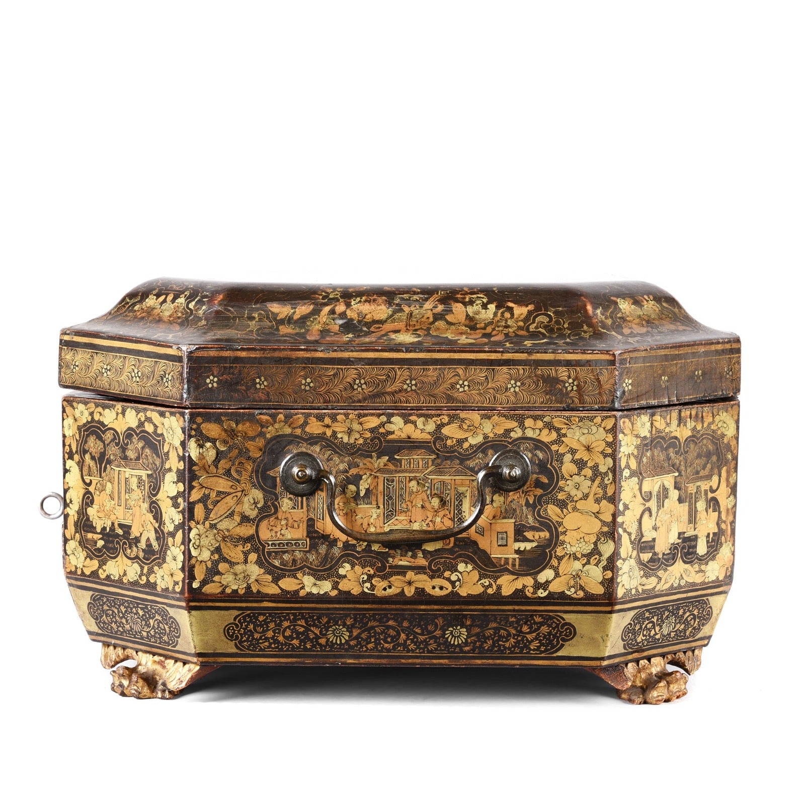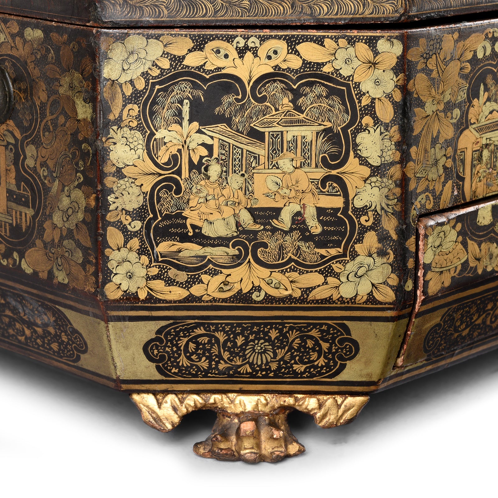 Foot Detail From Antique Chinoiserie Export Black Lacquer Sewing Box | Indigo Antiques