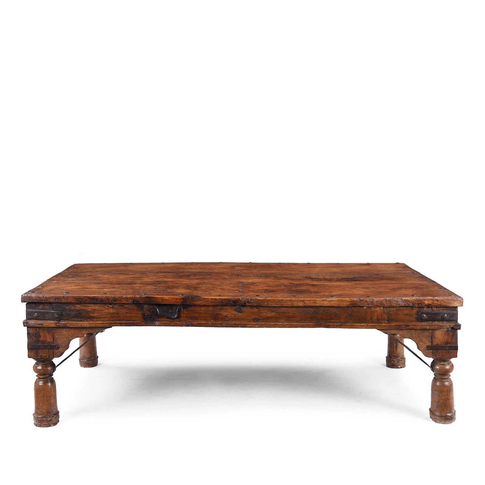 Crafted from roheda wood, a type of teak and the official wood of Rajasthan, this exquisite takhat table is a 19th century piece originating from Shekhawati and used by the wealthy merchant classes as a daybed. Its elegant design and history make it a stunning addition to any living room, conservatory, or summer house as a rustic centerpiece.
