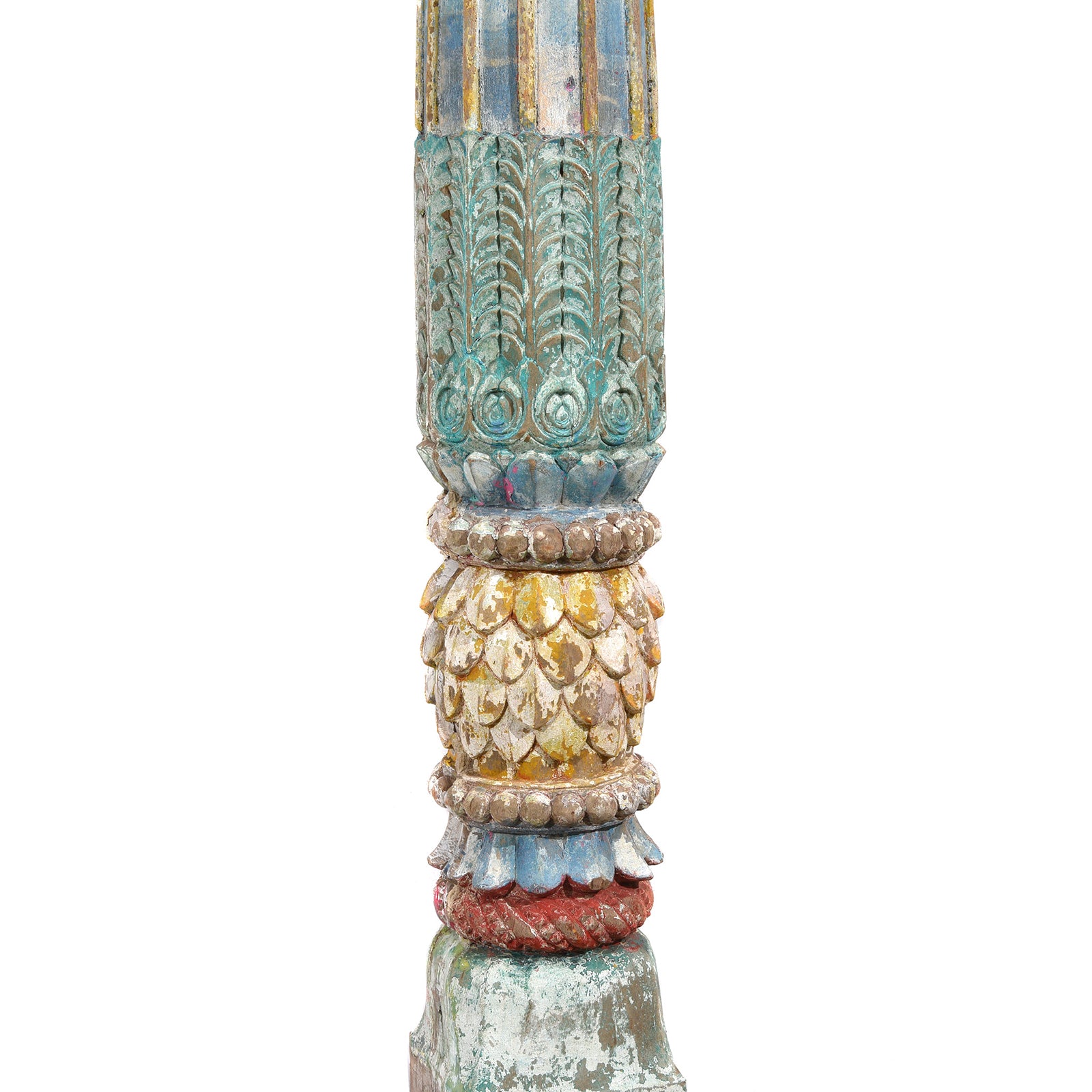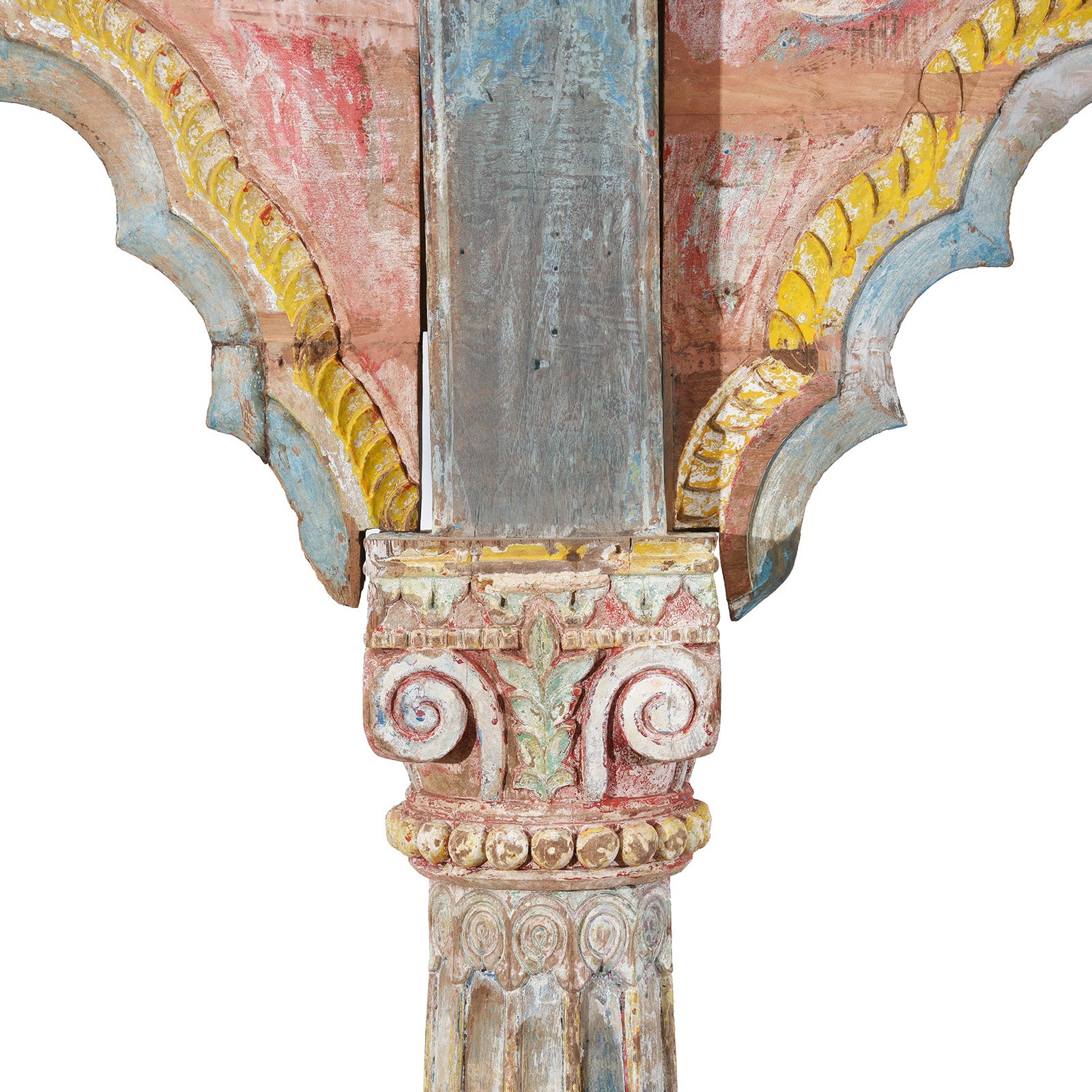 Pillar Carving Detail From Carved Teak Triple Arch From Maharashtra - Late 19thC | Indigo Antiques