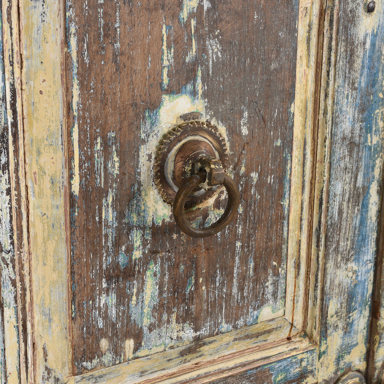 Handle Detail From Antique Carved Door With Original Paint From Gujarat - 19th Century | Indigo Antiques