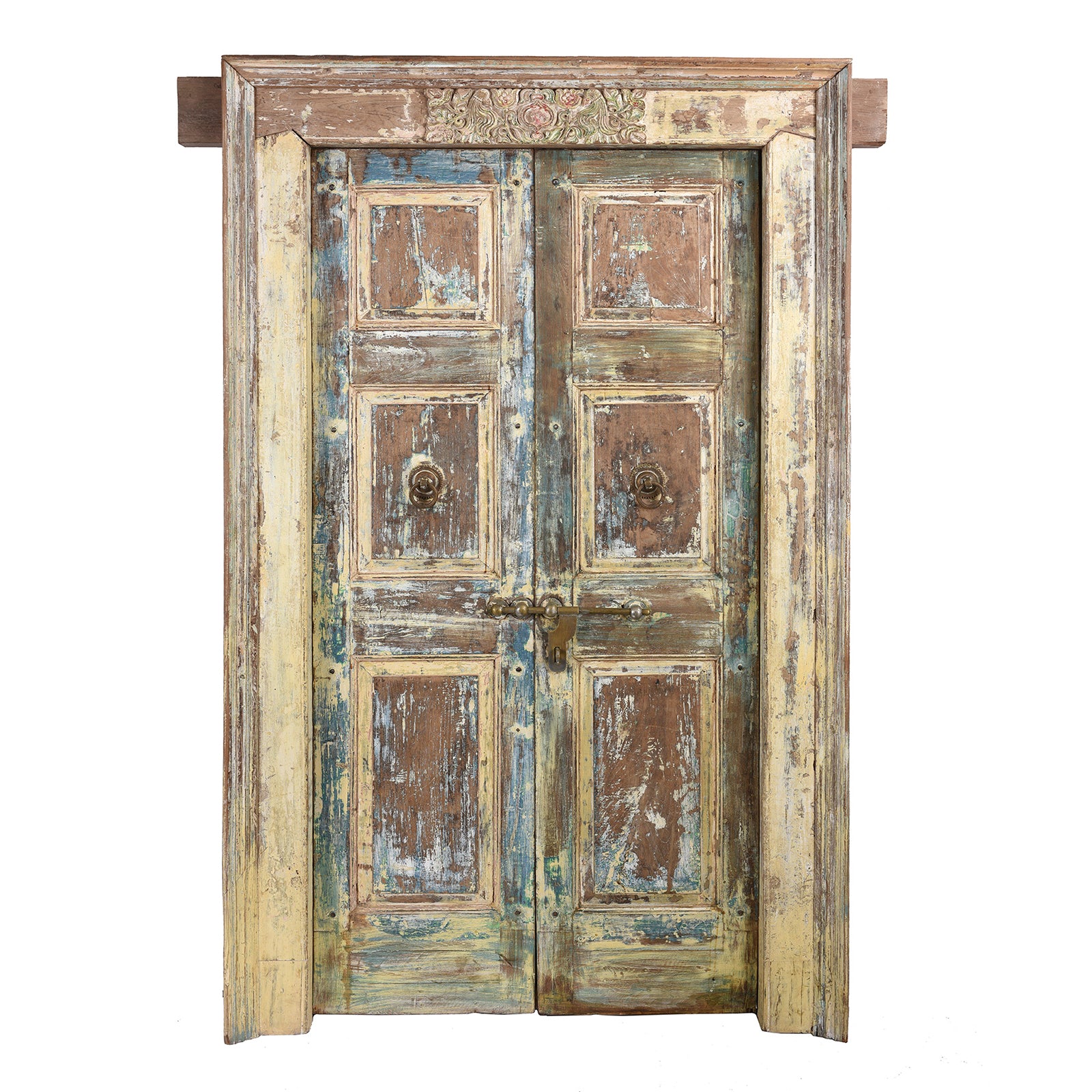 Antique Carved Door With Original Paint From Gujarat - 19th Century | Indigo Antiques