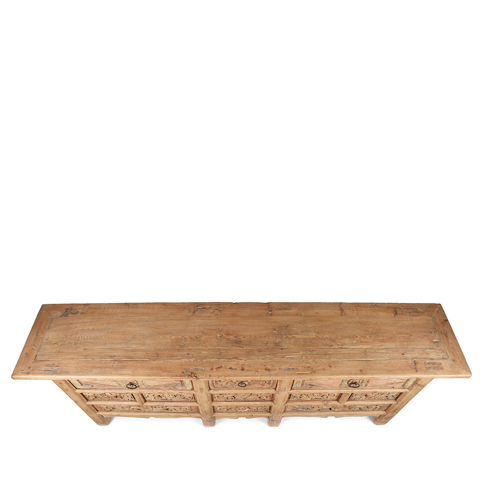Top Down View Of Antique Carved Elm Coffer Sideboard From Shanxi Province - 19th Century | Indigo Antiques