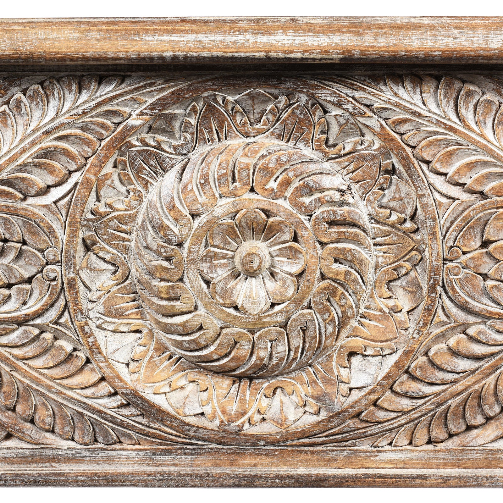 Carving Detail From Carved Blanket Chest Made From Reclaimed Painted Teak | Indigo Antiques