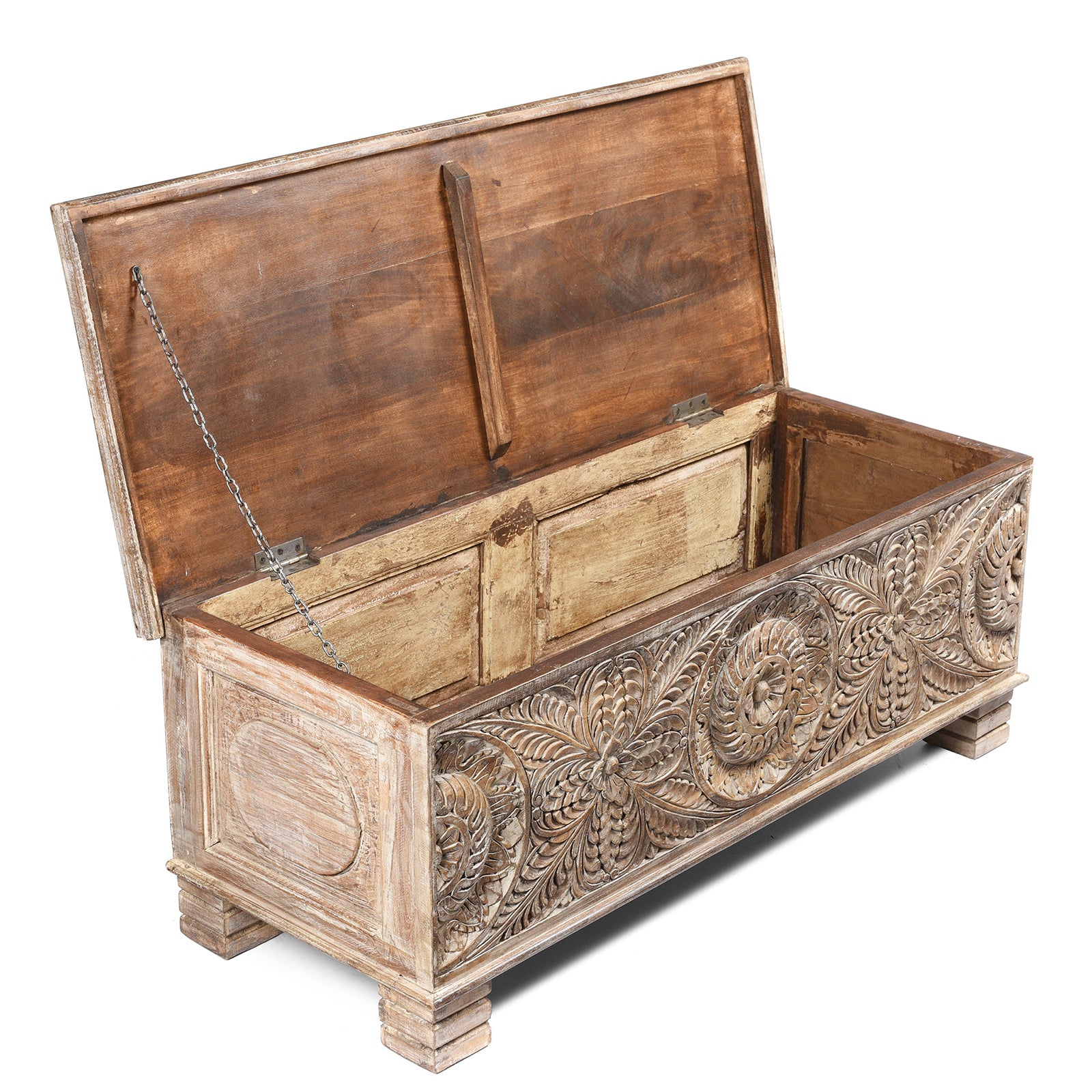 Carved Blanket Chest Made From Painted Teak & Mango Wood