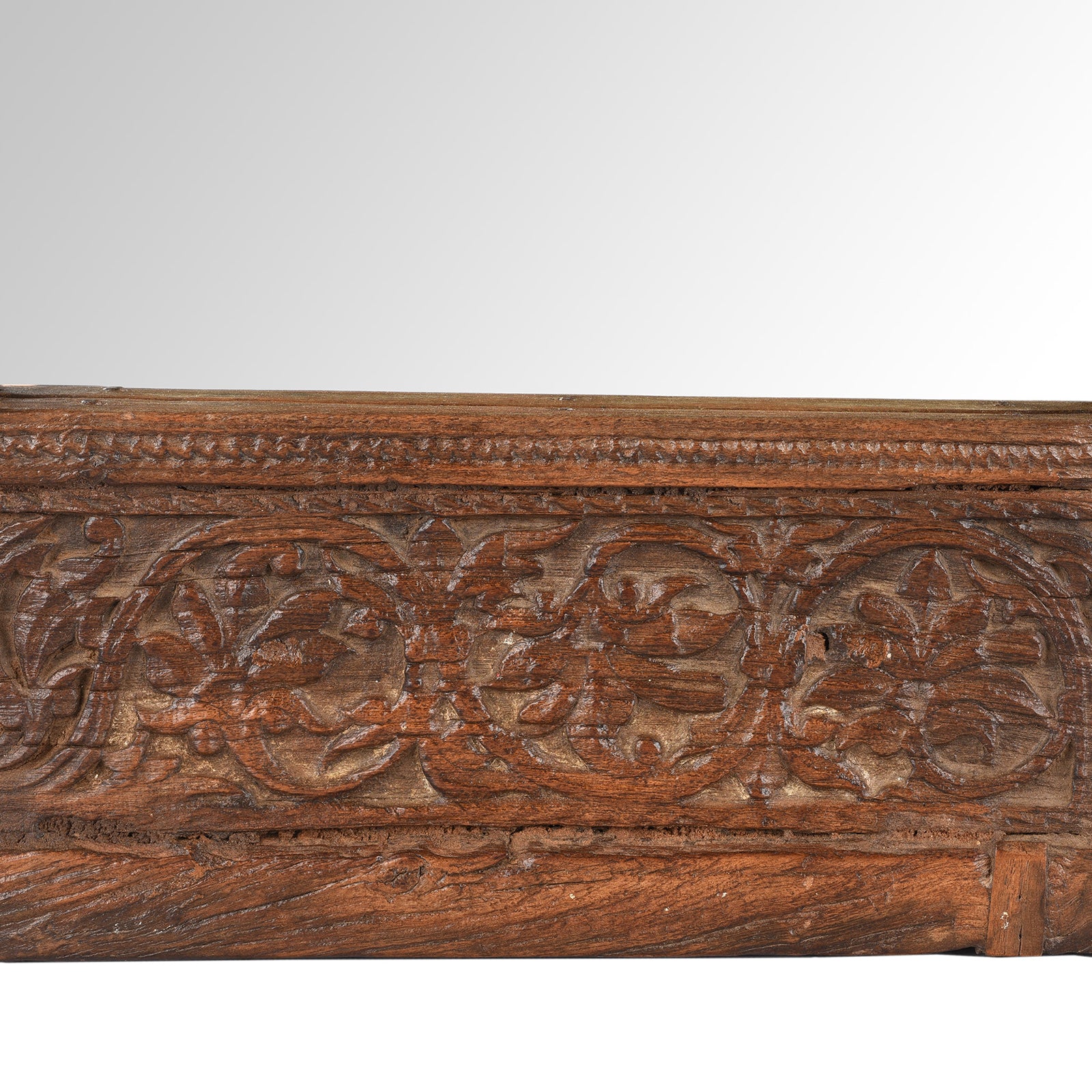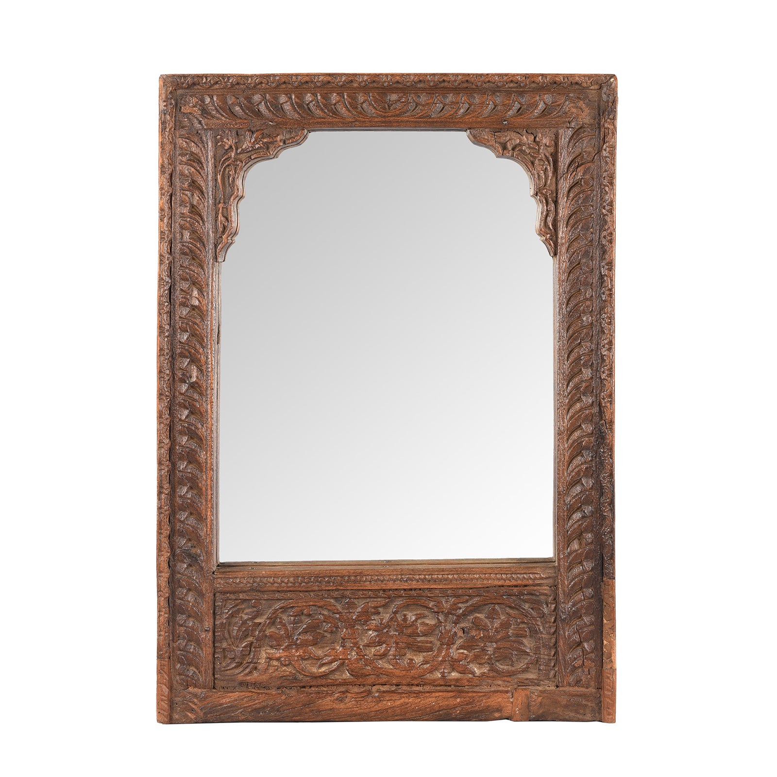 This pretty carved roheda wood mirror is made from an original Shekhawati window frame. Shekhawati is a desert region in Rajasthan well known for its excellent quality of Mughal carving. The arch shape is of classic Mughal design.