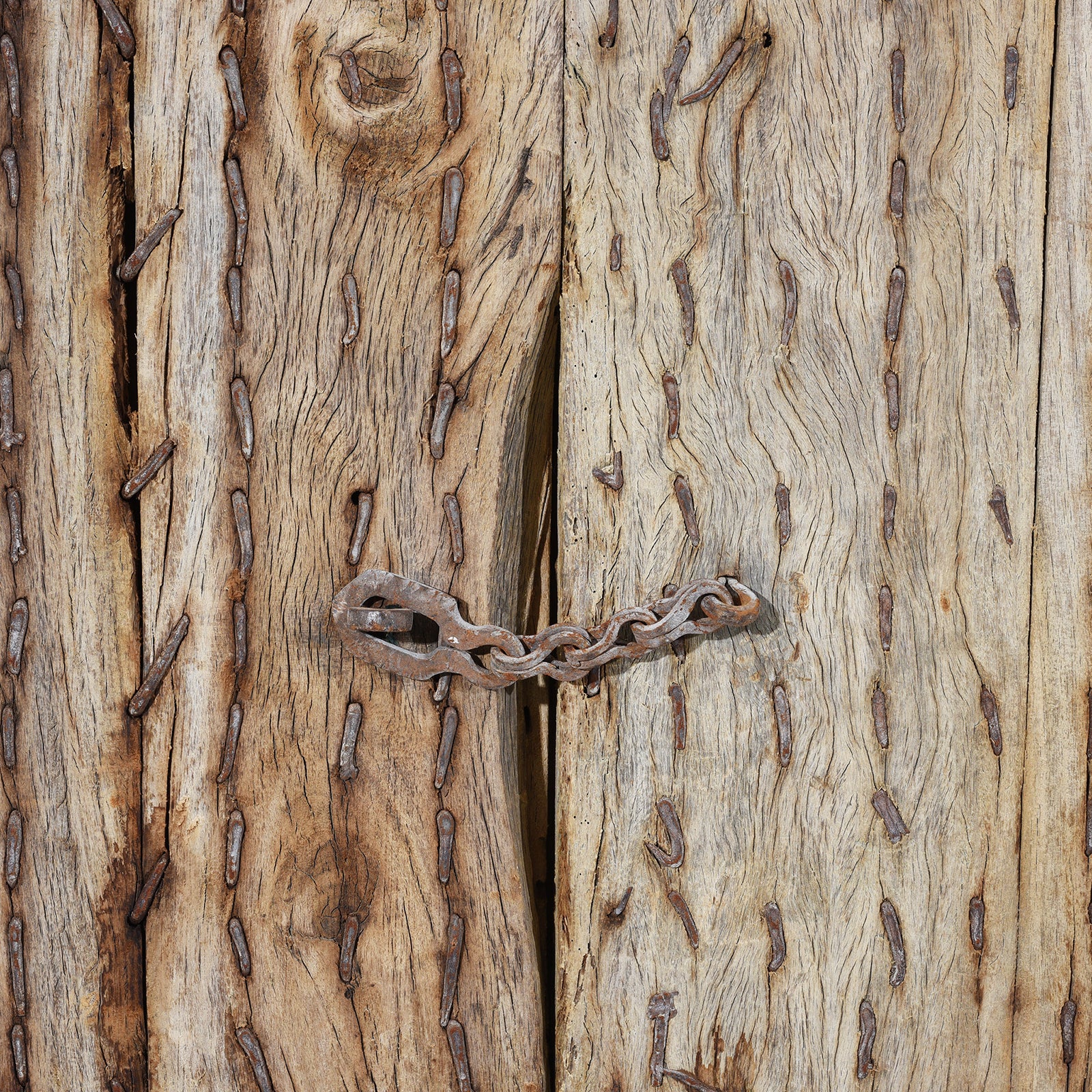 They are bound with iron and a stylised lotus star design can be seen across the shutters.