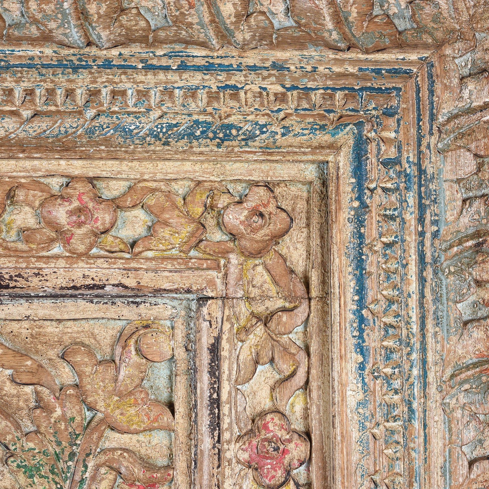 Carving Detail From Carved Large Mihrab Mirror Frame - Limed And Painted Finish | Indigo Antiques