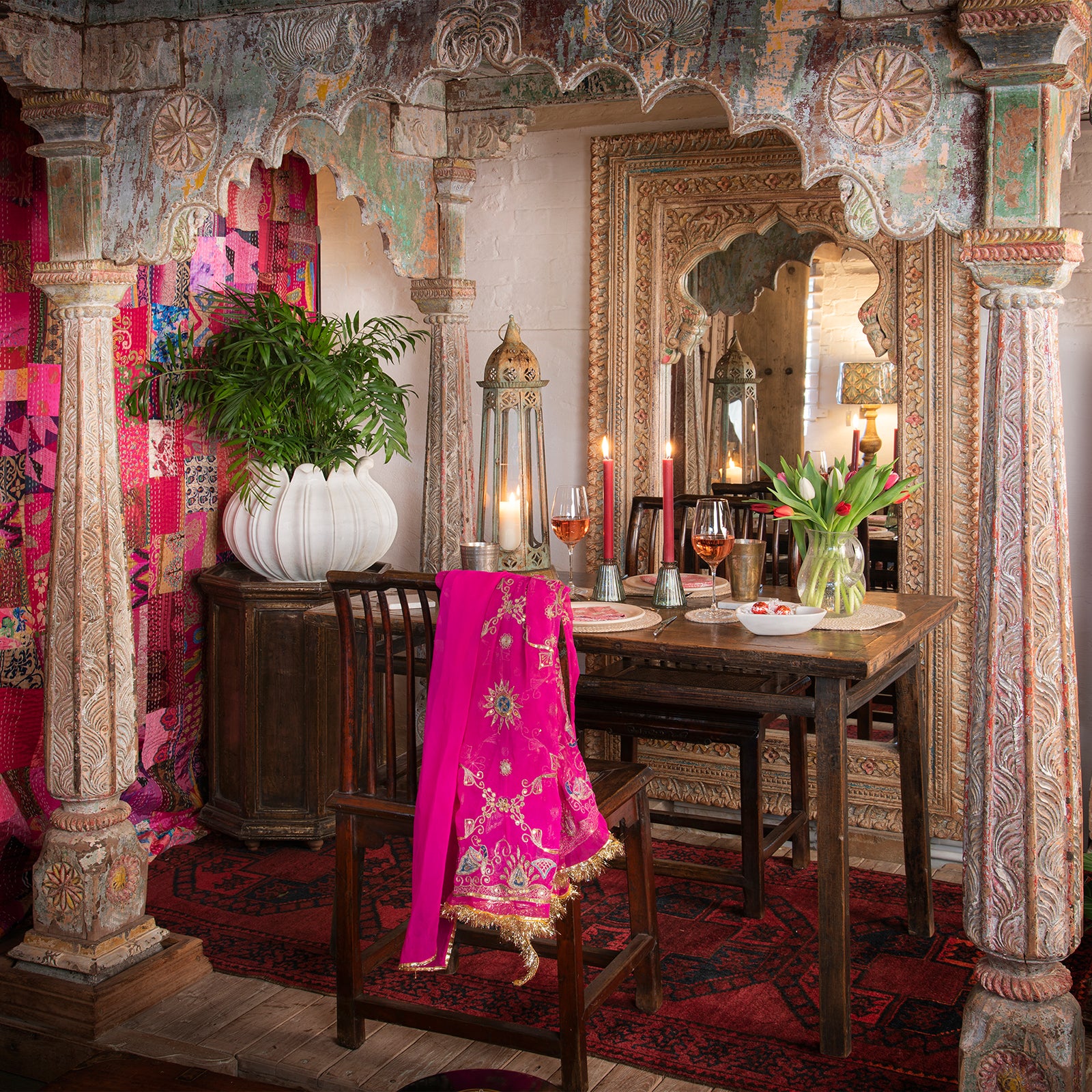 Carved Large Mihrab Mirror Frame - Limed And Painted Finish | Indigo Antiques