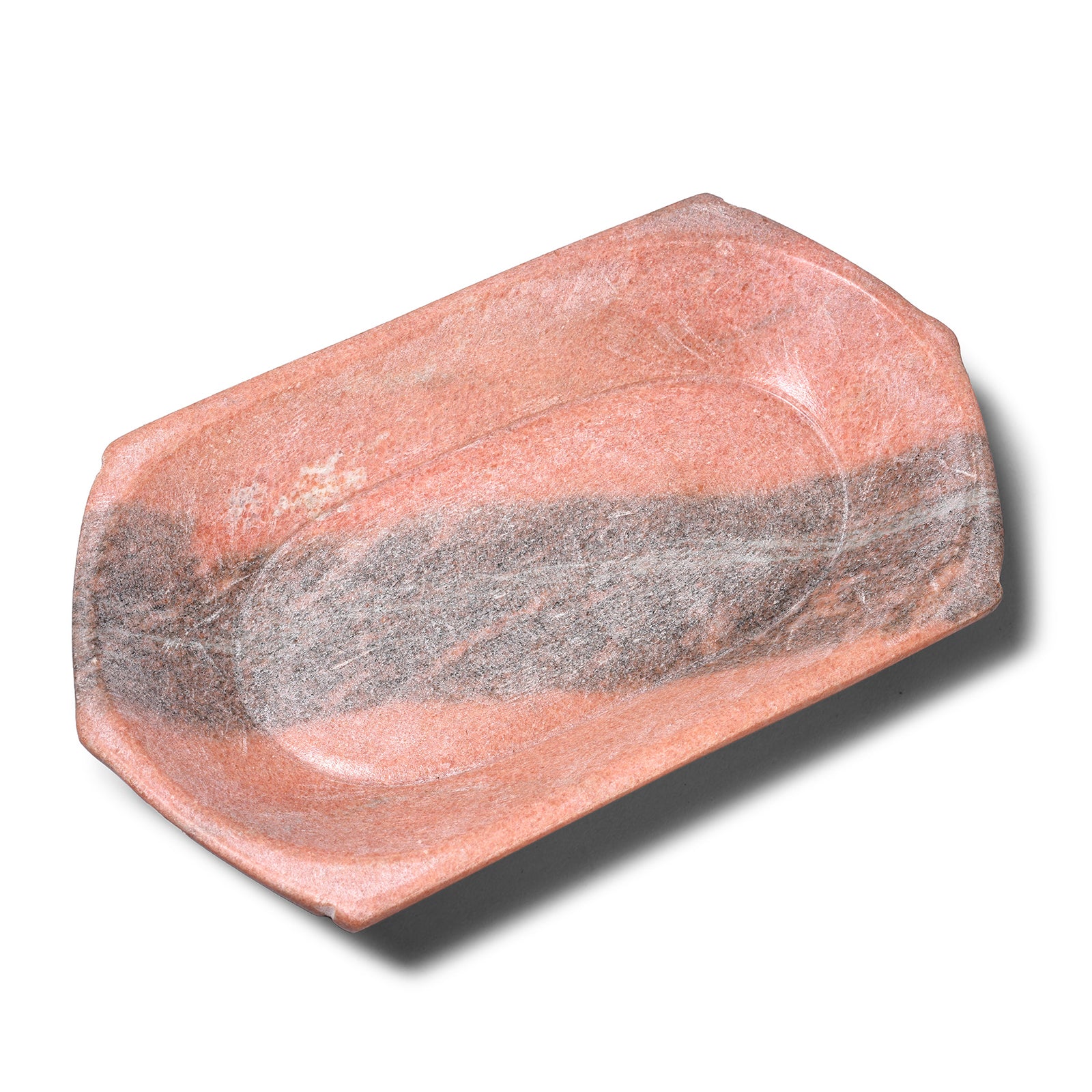 Indian mixing bowls like this one were known as paraths and were used for making chapatti & paratha breads. They are found across India and are always made from a single piece of timber, stone, or marble. Marble paraths are far less common. These pink marble bowls are made by hand in Rajasthan using traditional techniques.