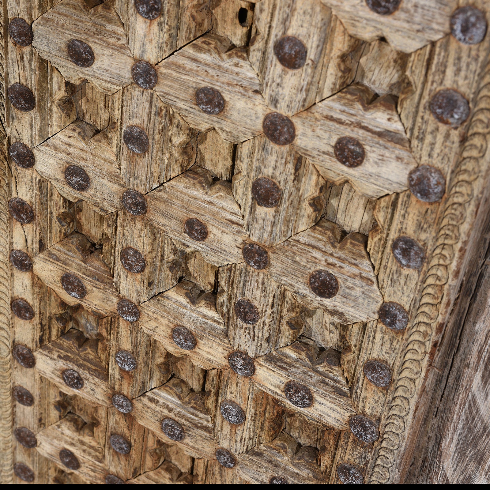 Carving Detail From Antique Carved Sun Bleached Window Shutters From Punjab - 18th Century | Indigo Antiques