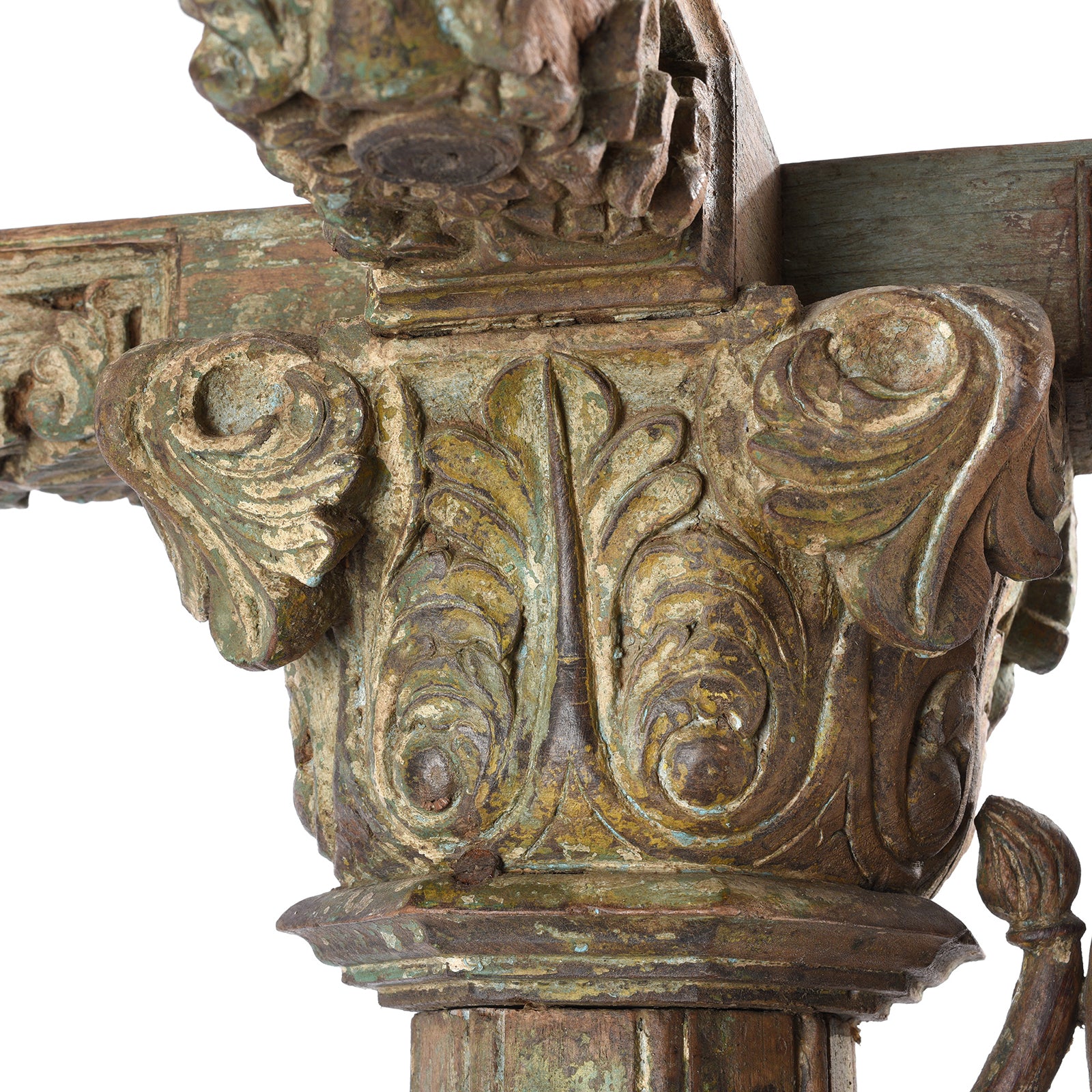 Carving Detail From Antique Teak Indian Coat Stand Made From A Carved Pillar - 19th Century | Indigo Antiques