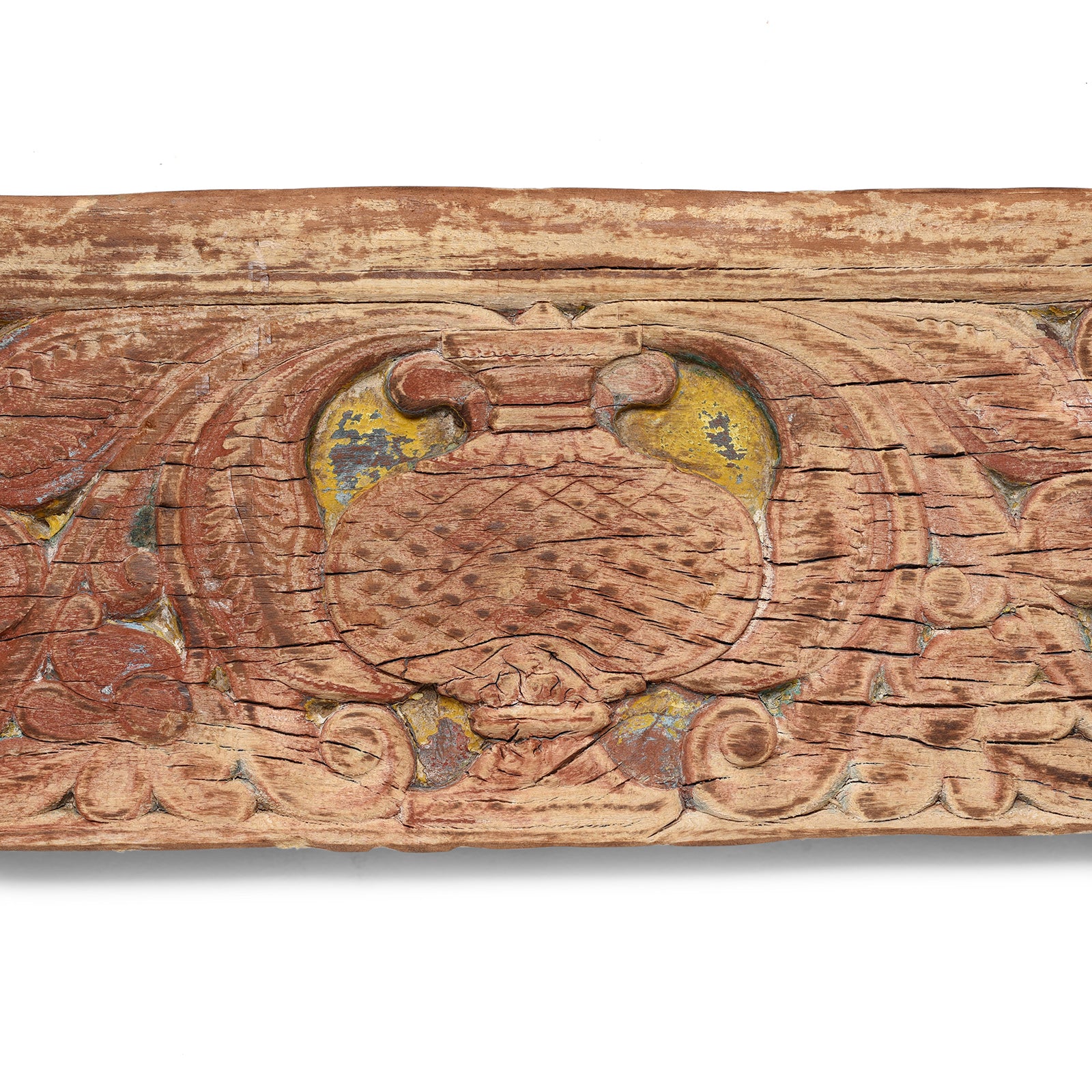 Angled View Of Antique Carved Teak Floral Lintel Panel | Indigo Antiques