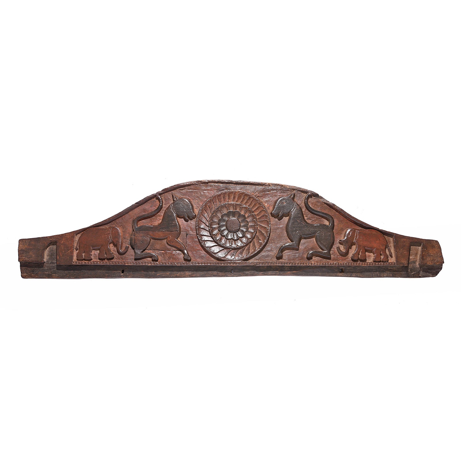 Antique Indian Lintel Panel From Andhra Pradesh With Tigers & Elephants | Indigo Antiques
