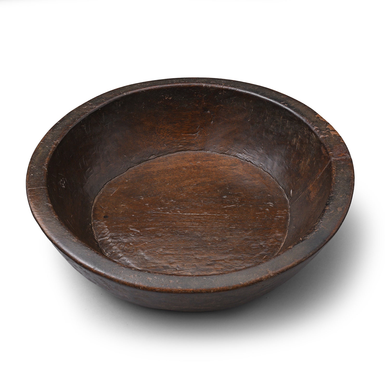 This original Parath Bowl, crafted in the early 20th century is made from a single piece of sturdy teak. These bowls were traditionally used for mixing dough to create chapatti and paratha bread. The rich patina on our old parath bowls is a result of years of regular use, making them a valuable addition to any kitchen. This one was originally from Rajasthan.