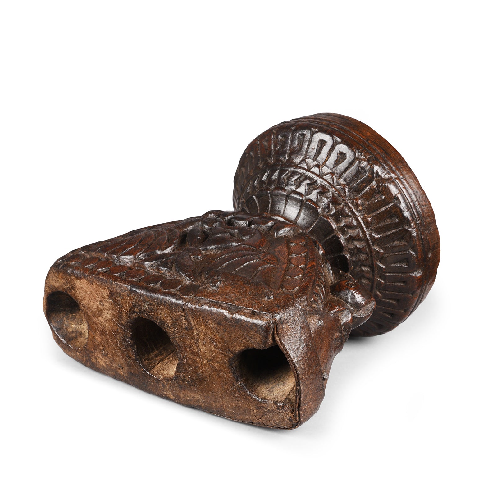 Top Down View Of Antique Carved Teak Seed Drill From Gujarat | Indigo Antiques