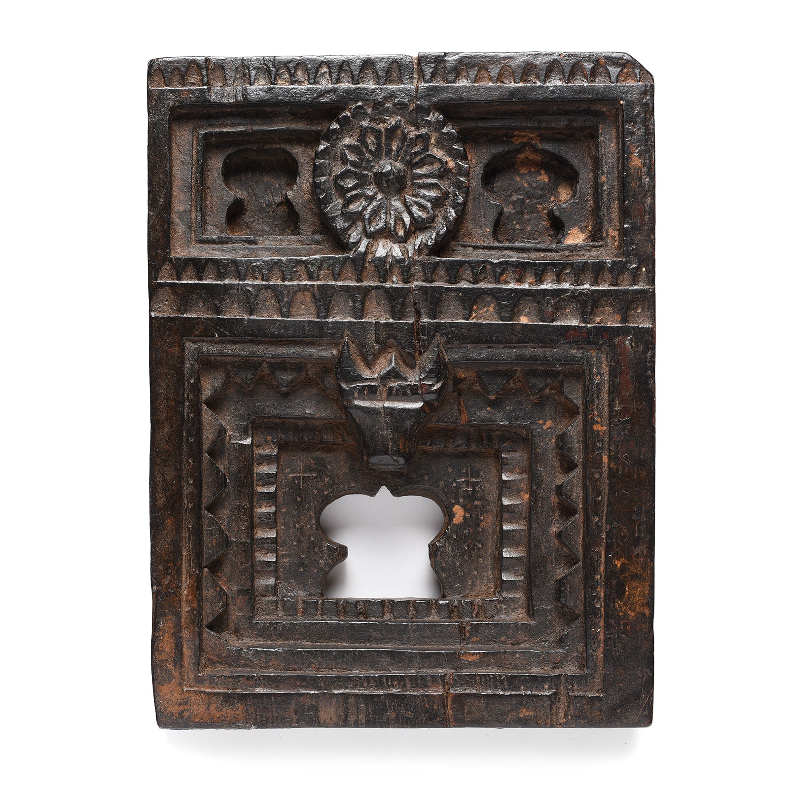 Carved Teak Votive Panel From Andhra Pradesh - Ca 1900