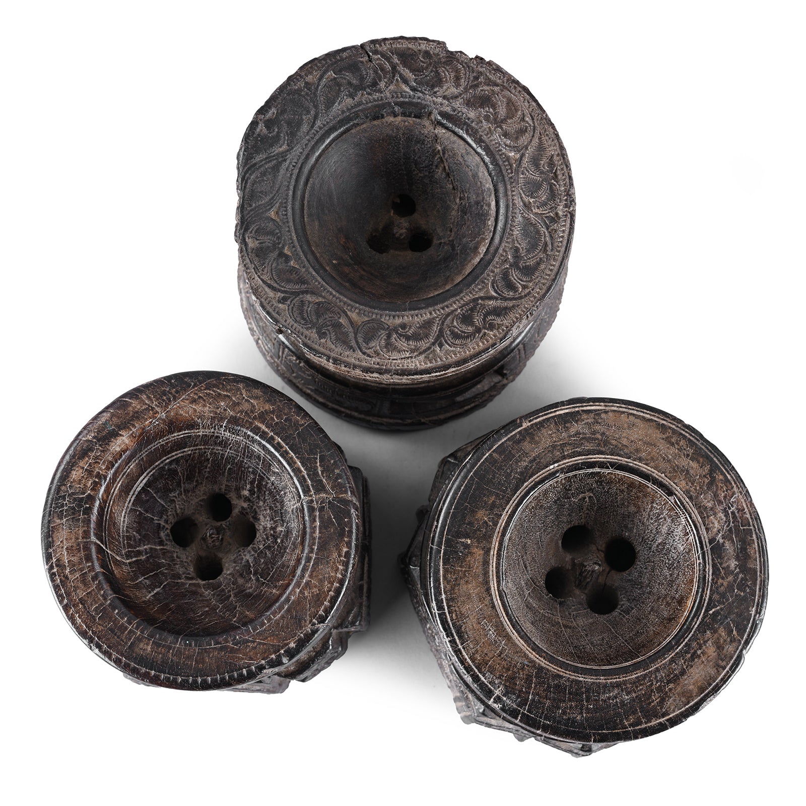These beautifully carved antique Indian seed drills have developed a wonderful patina over the decades. The rosewood seed drills are usually from Kerala in South India. In Gujarat, they're called orani (ઓરણી) and would have been used to sow seeds in the fields. The carvings have been softened through over 100 years of repeated daily use.