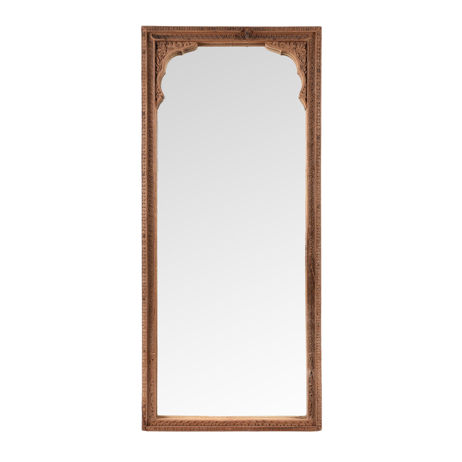 This beautifully carved mirror started life as a window frame in the  Shekhawati region of northeast Rajasthan. The classic Mughal design and detailed carvings make a perfect frame for a spectacular mirror.