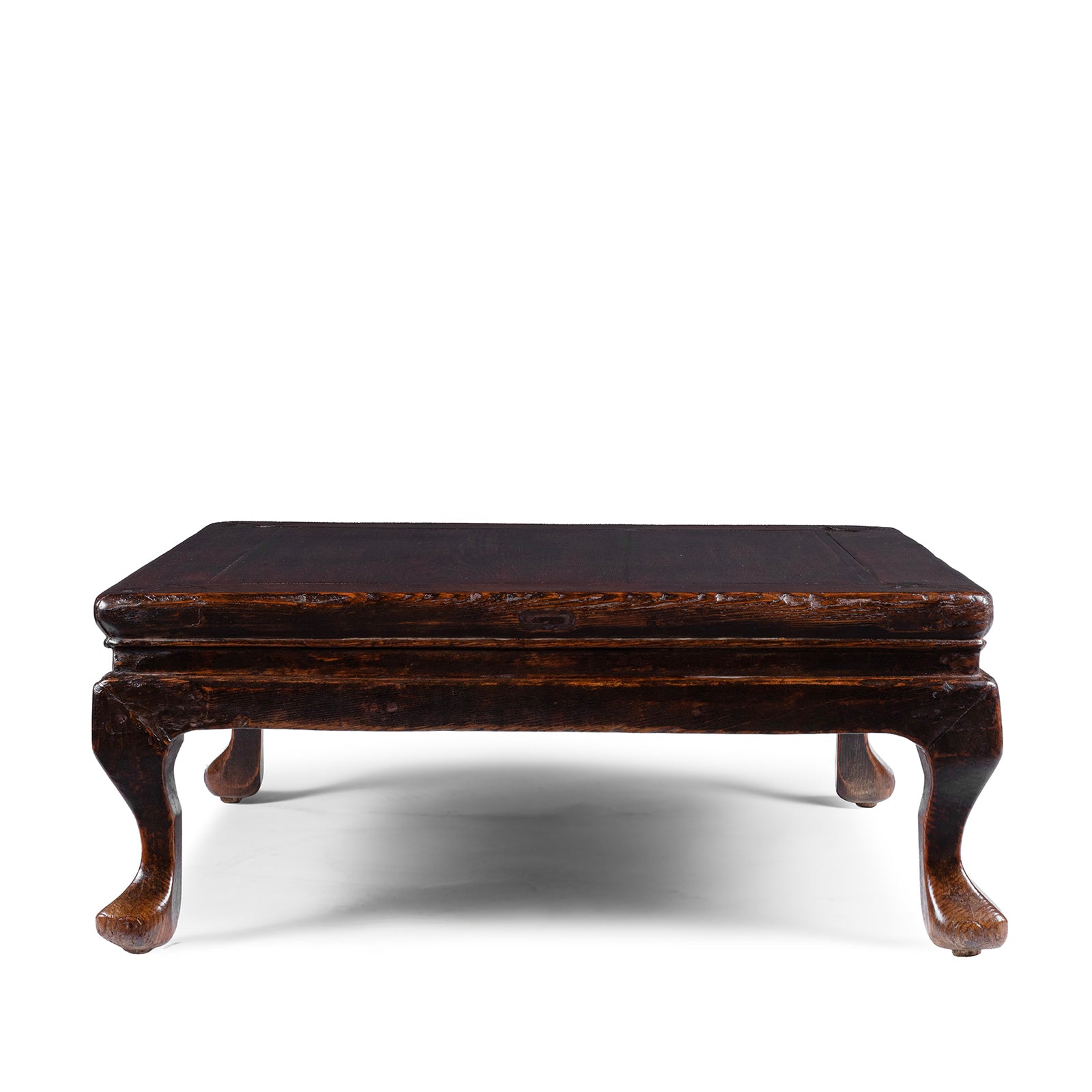 This refined low table originates from Shanxi province in Northern China and dates to the 19th century. Crafted from northern elm (yumu 榆木) paired with catalpa (tongmu 桐木), it belongs to the long regional tradition of furniture made for life around the kang, where families gathered to eat, talk and work on a warmed platform during the winter months. Its sculptural cabriole legs and quietly balanced proportions closely relate to the Shanxi examples illustrated in Karen Mazurkewich’s Chinese Furniture: A Guide to Collecting Antiques, particularly the low kang tables shown in Figs. 242 to 246, which demonstrate a preference for elegant leg profiles and restrained decorative detail.