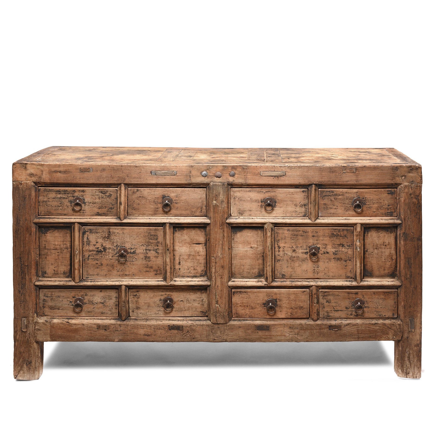 Top detail of a Bleached Elm Chinese Chest Of Drawers From Gansu - Late 19thC | Indigo Antiques