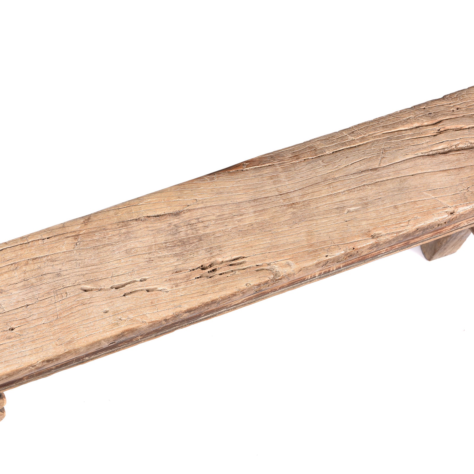 This late 19th century Chinese spring bench comes from Shanxi Province and is crafted from solid elm wood, a material widely used in northern Chinese furniture for its strength and attractive grain. Known as spring benches, these elegant narrow benches were traditionally placed outside shops, teahouses, and small restaurants, where both staff and customers could sit and enjoy the fresh air.
