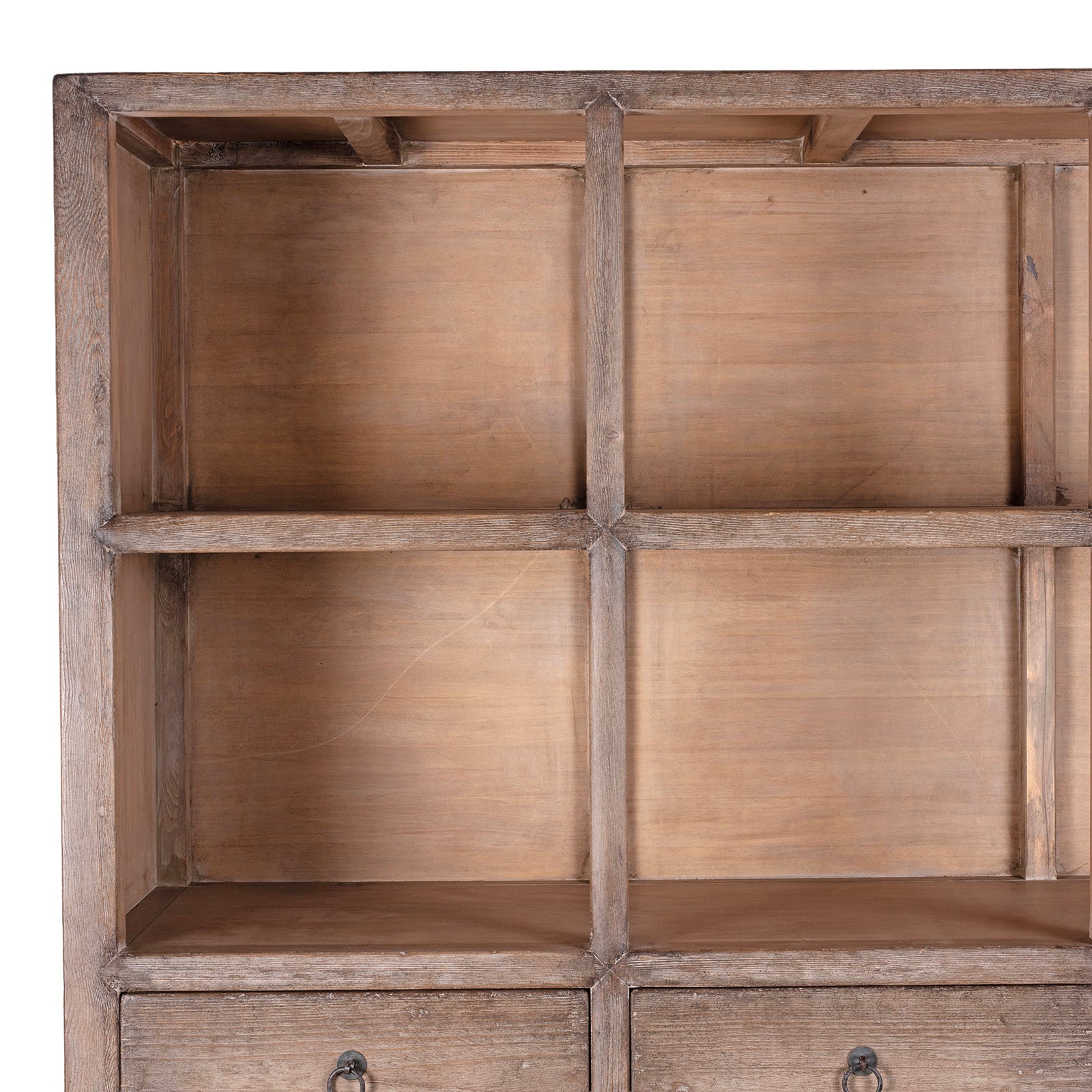 This striking Chinese shelving unit has been crafted from reclaimed old pine and has a soft bleached finish that highlights the natural grain of the timber. With its understated beauty and strong, architectural lines, it offers both practicality and style, making it an ideal storage or display piece for a contemporary or traditional home.