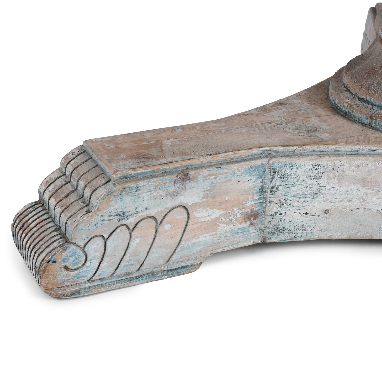 Its classical pedestal base is carved with floral detailing and scrollwork feet, offering solid support and timeless charm. The generous circular top encourages convivial dining and makes this piece an ideal choice for both rustic and contemporary interiors.