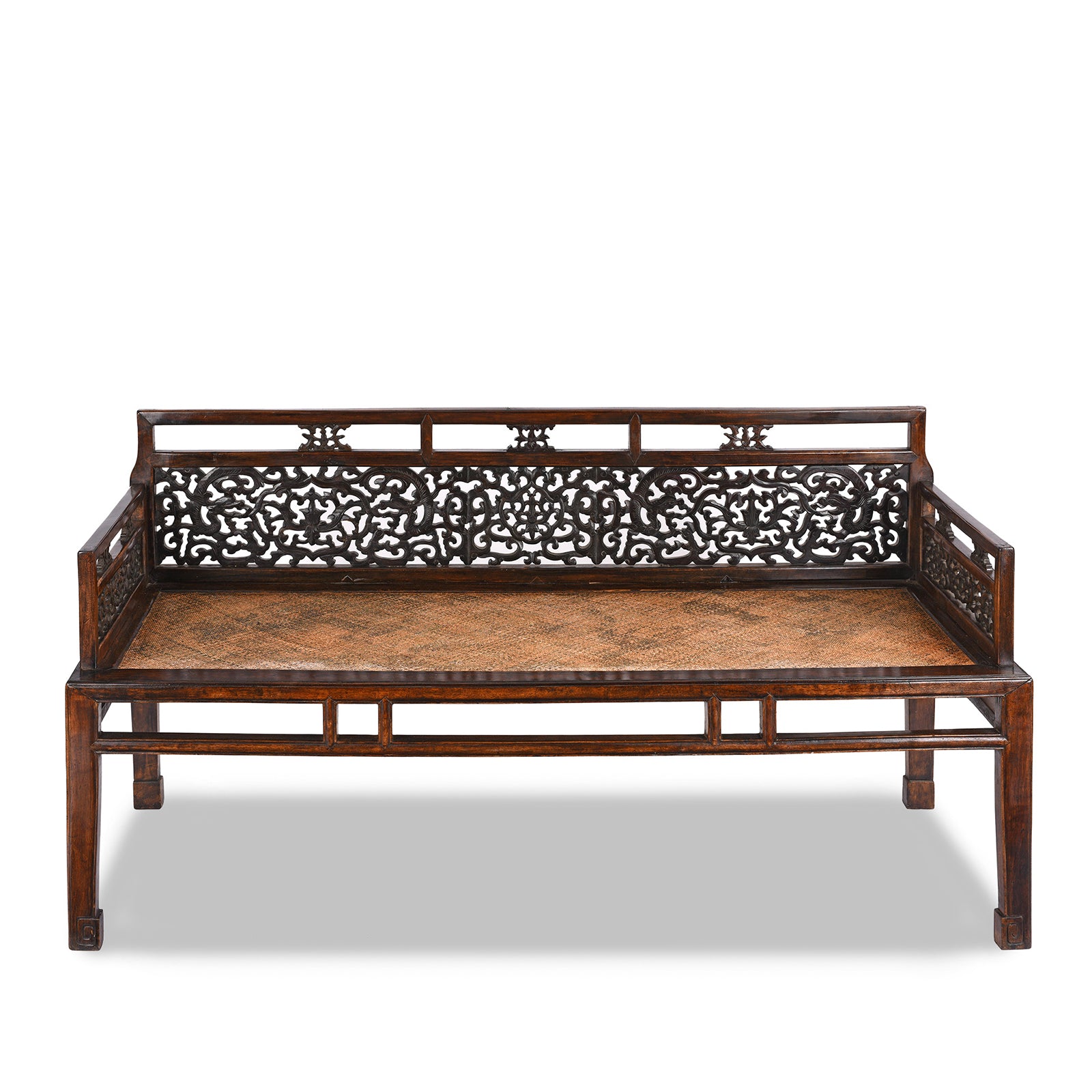 Top Down View Of Antique Chinese Caned Bench Qing Dynasty - Ca 1910 | Indigo Antiques