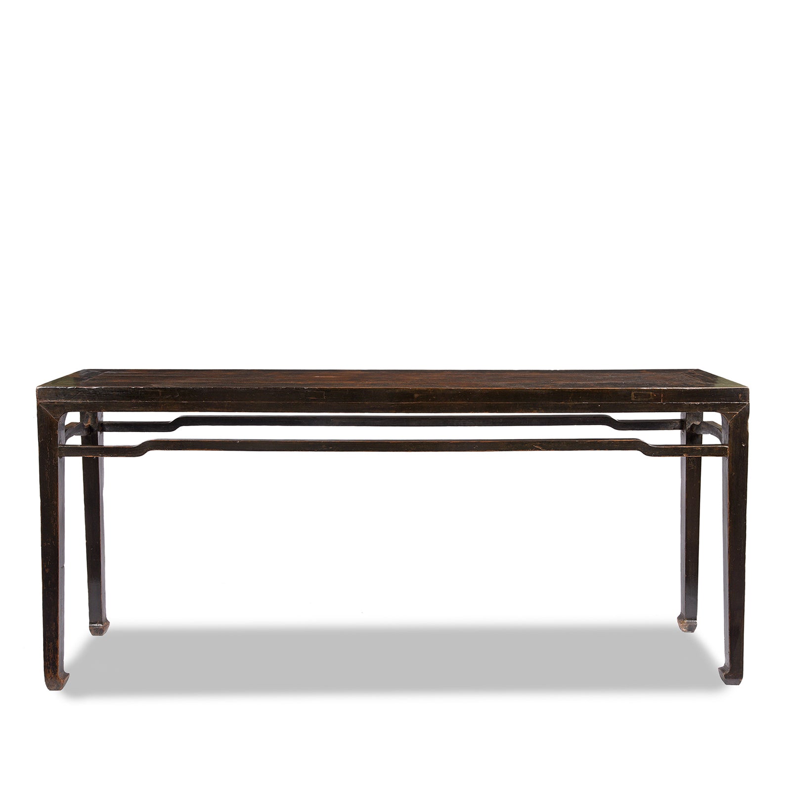 Altar tables were used for ancestor worship in China. This piece was once fully black lacquered and with use, the wood grain is partially visible.