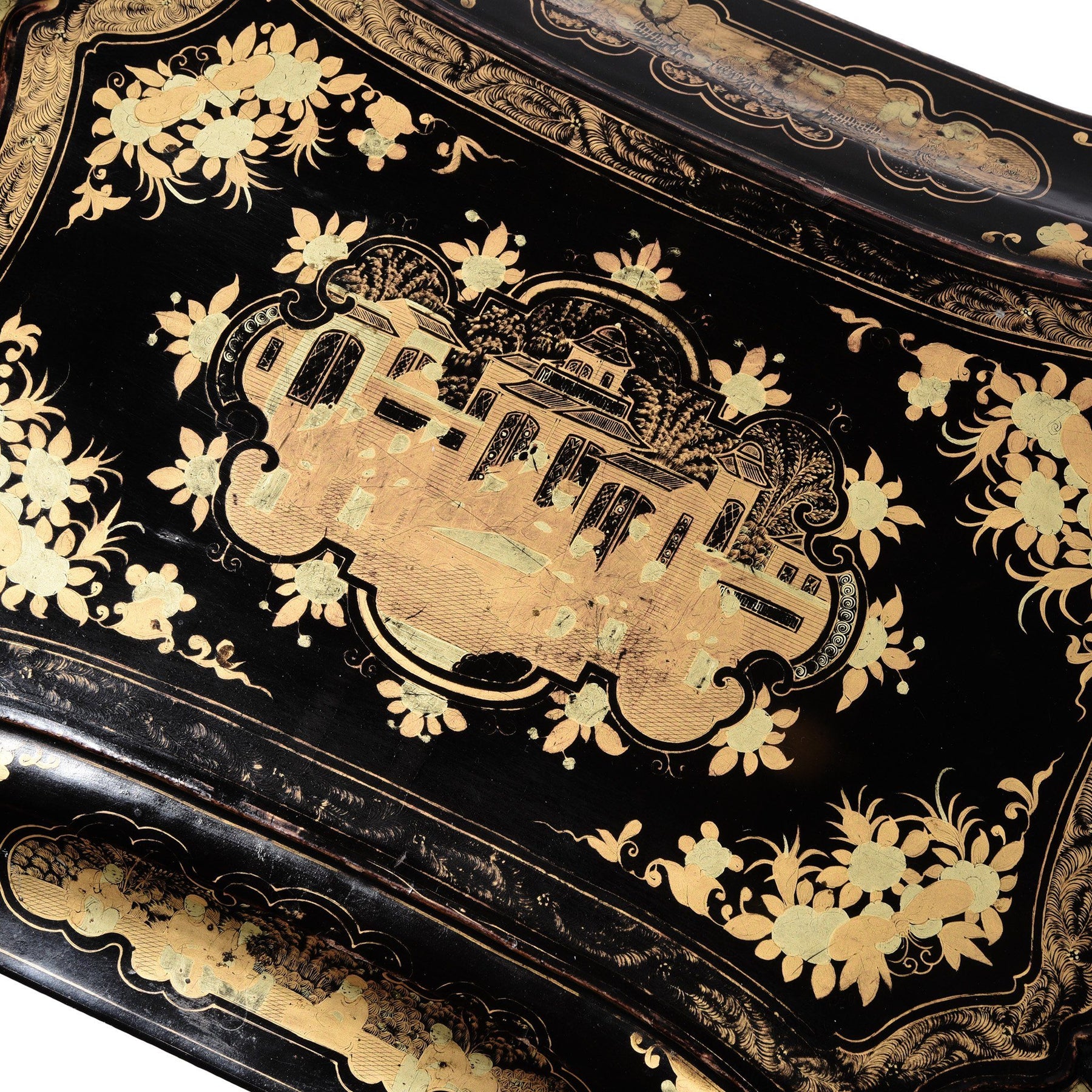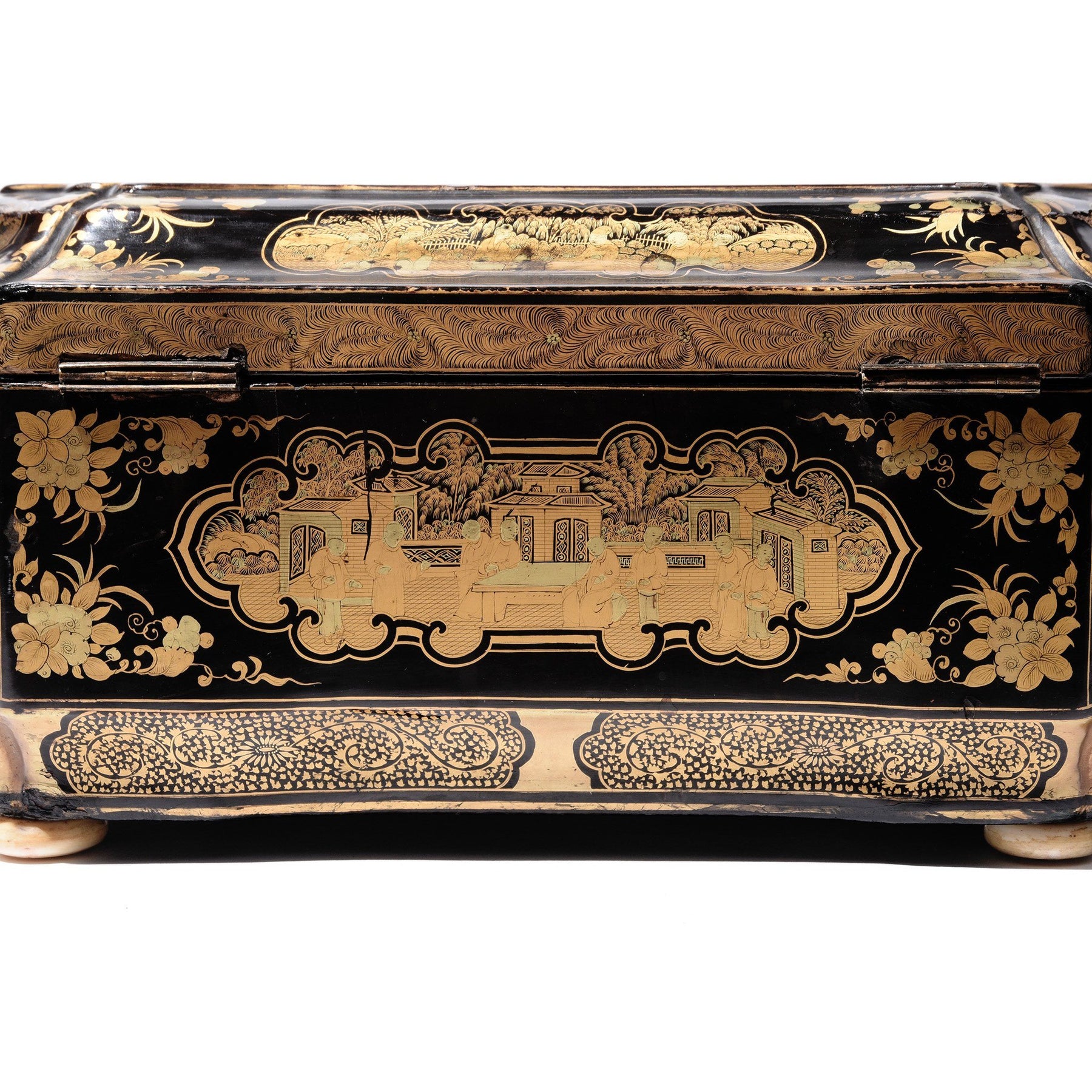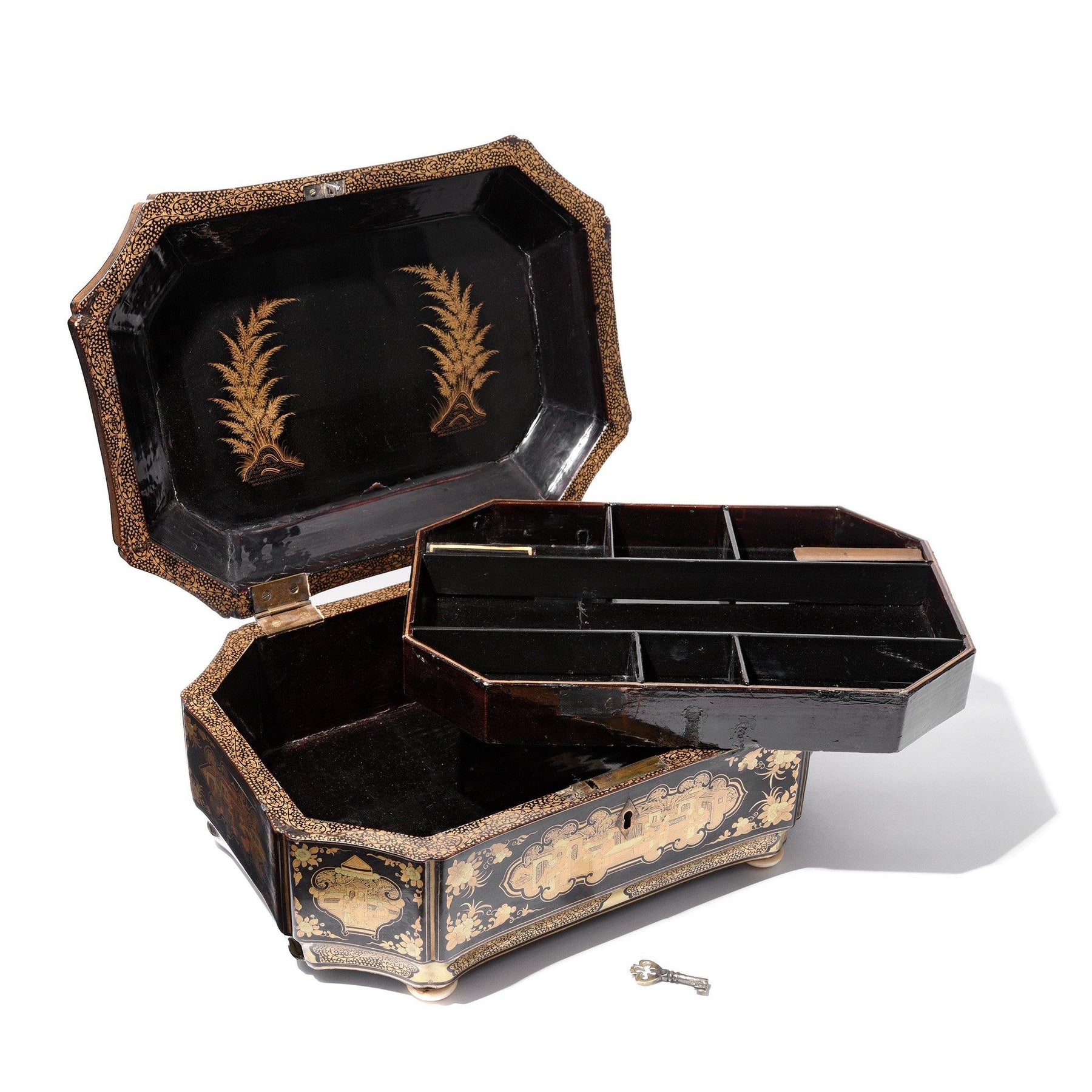 Gilt Black Lacquer Chinese Export Sewing Box - Early 19th Century