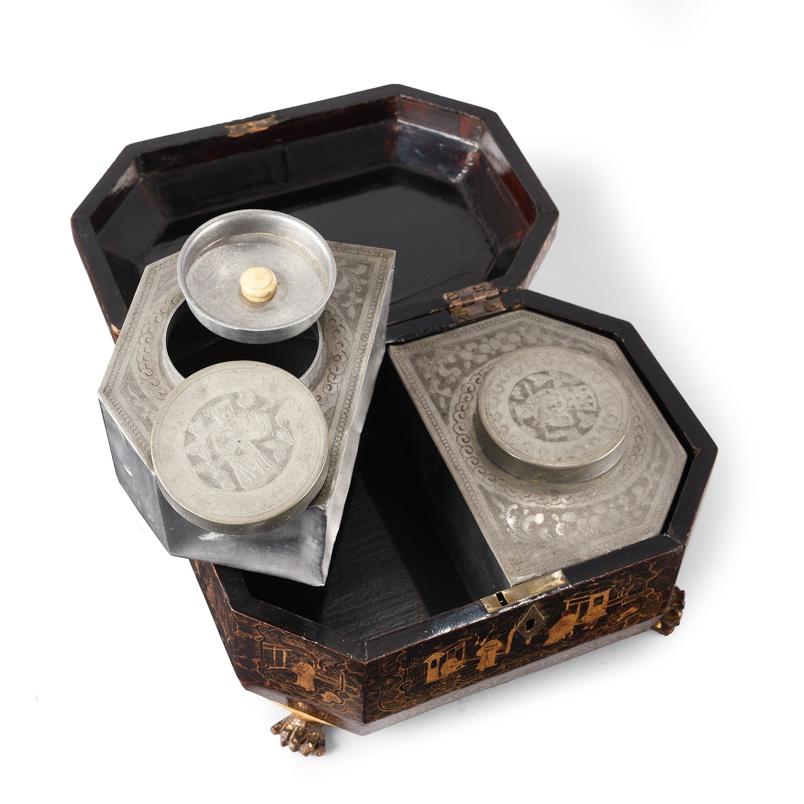 Interior Of Chinese Export Black Lacquer Tea Caddy | Indigo Antiques