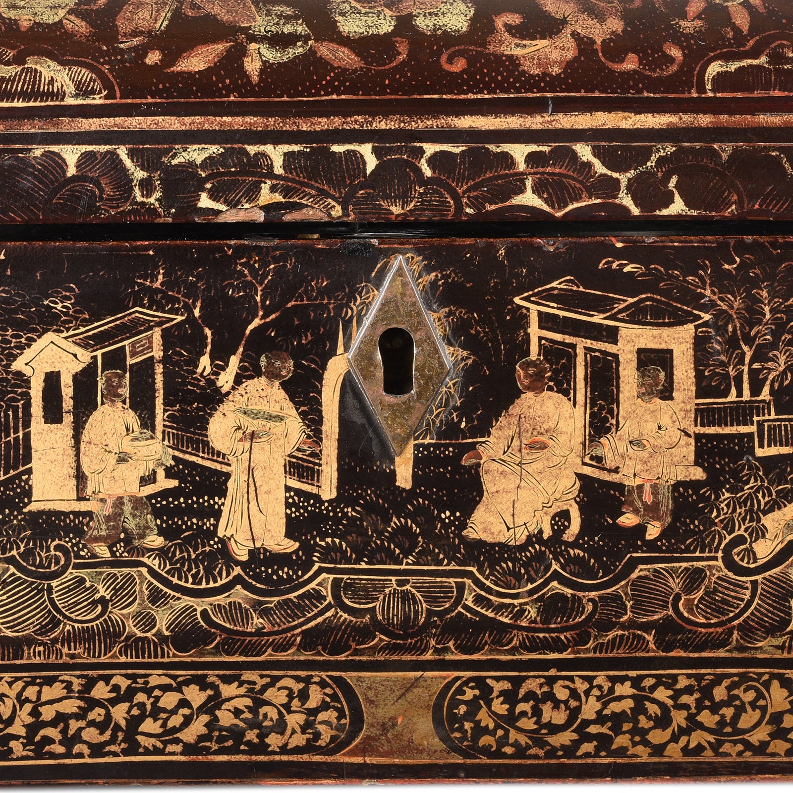 Detail From Chinese Export Black Lacquer Tea Caddy | Indigo Antiques