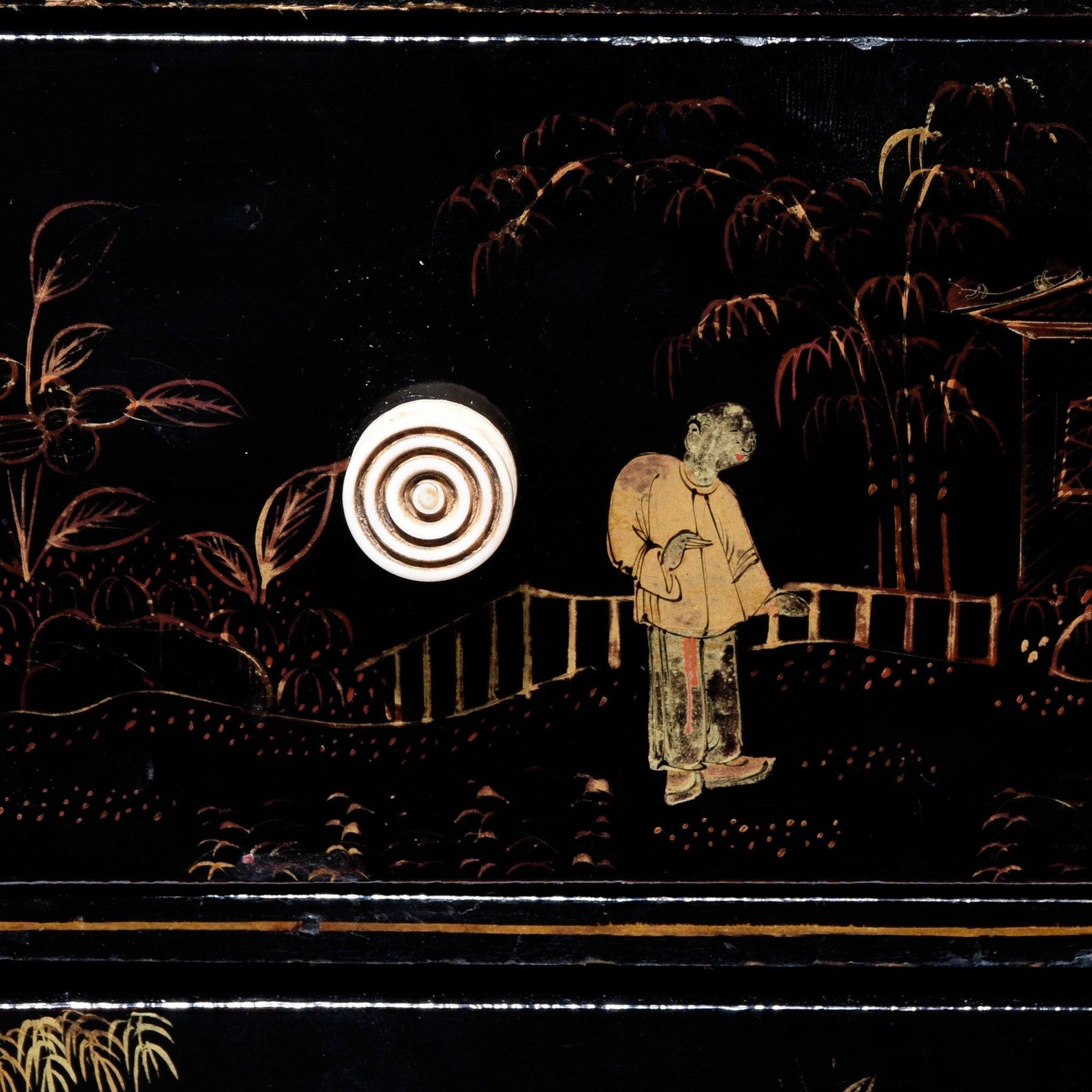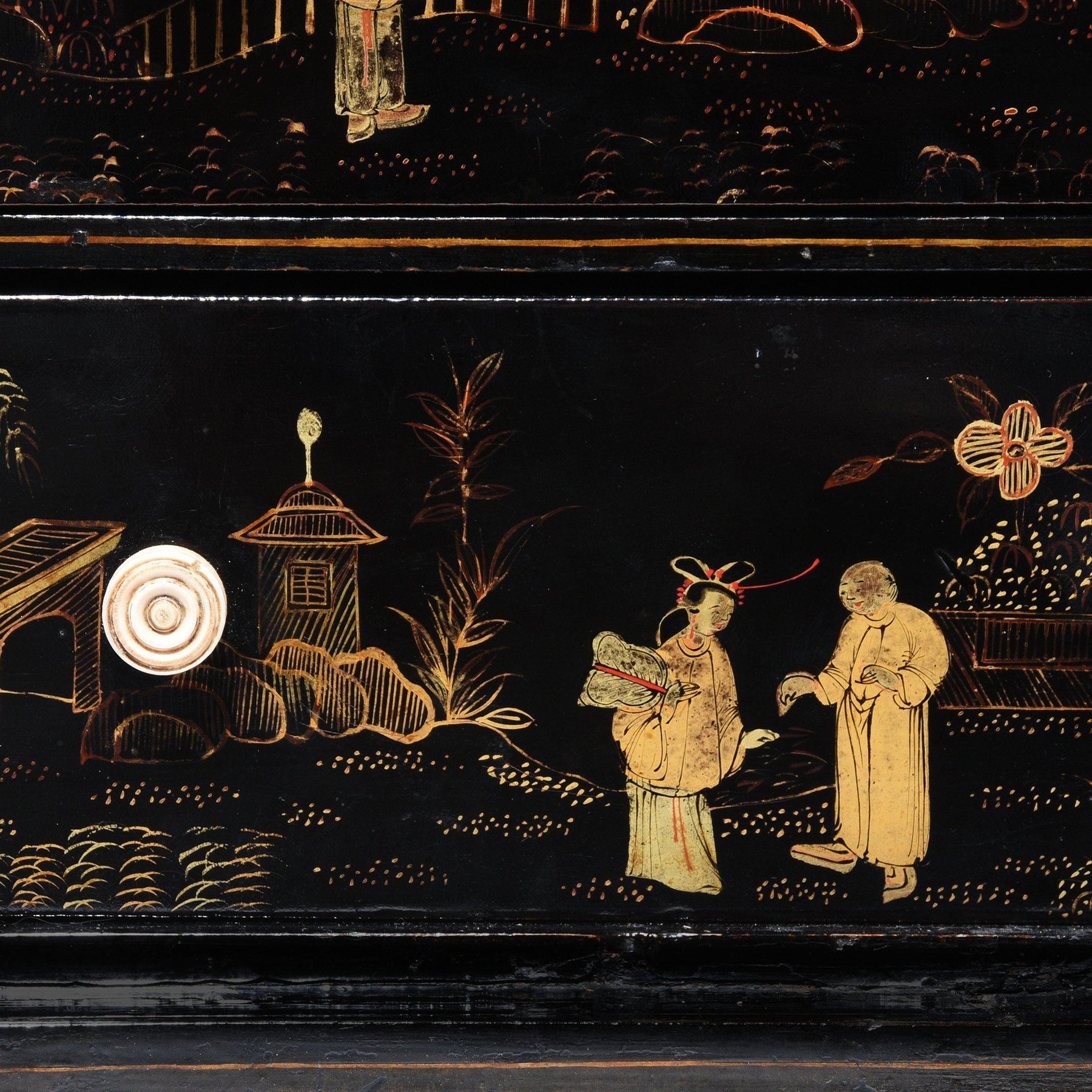 Back Detail from aChinese Export Gilt Black Lacquer Jewellery Table Cabinet - Early 19thC | Indigo Antiques