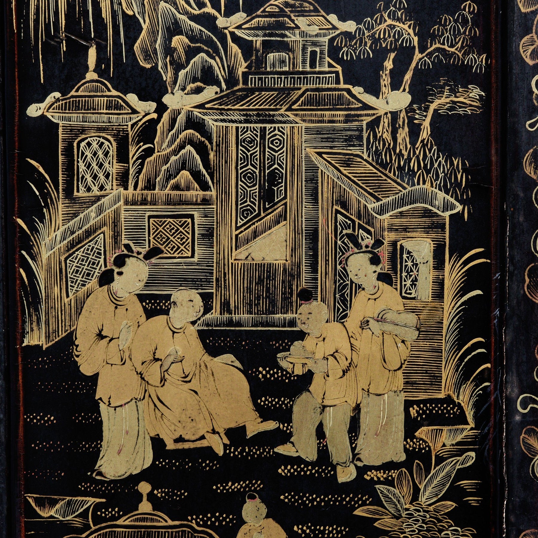 Painting Detail from a Chinese Export Gilt Black Lacquer Jewellery Table Cabinet - Early 19thC | Indigo Antiques