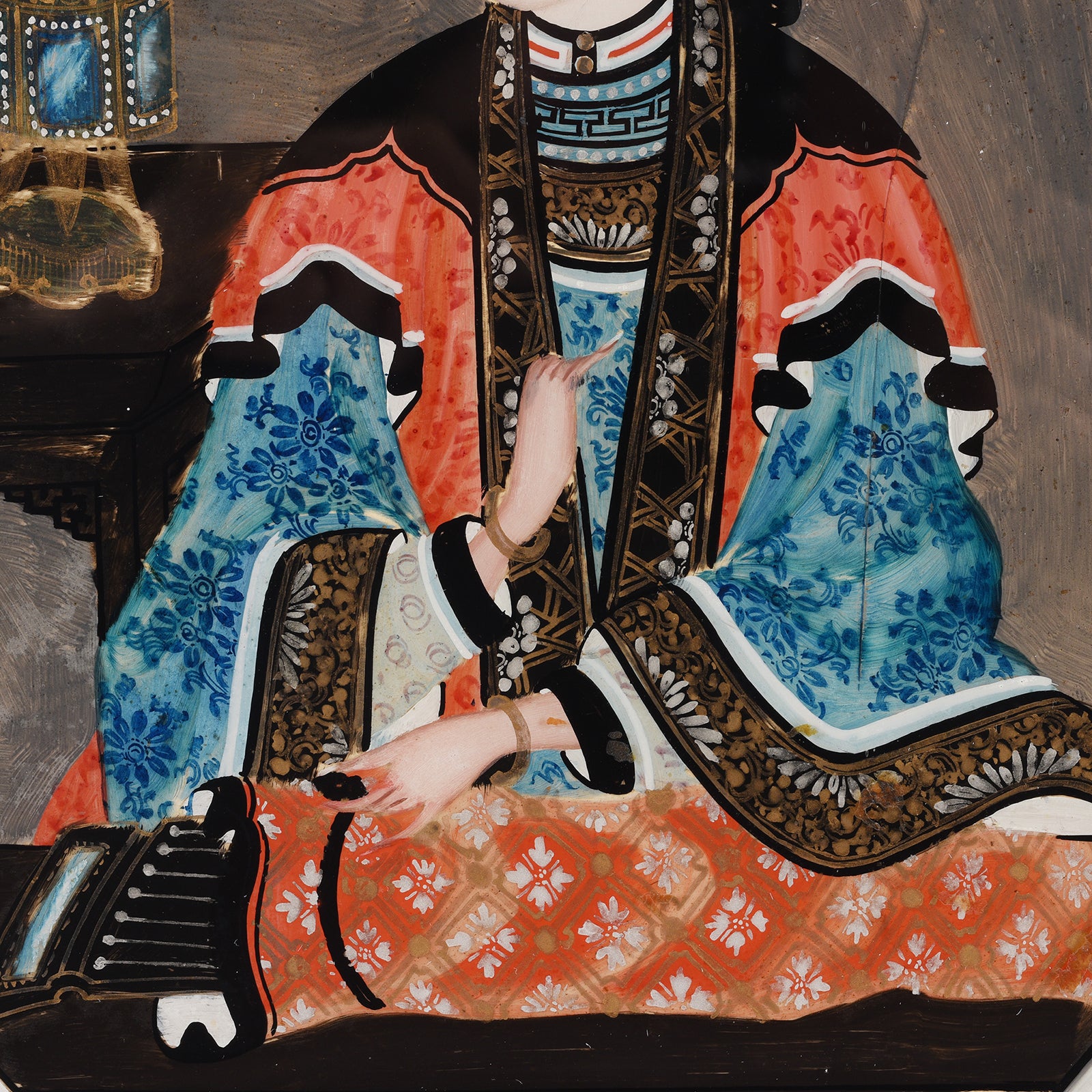 Detail From Antique Pair of Framed Reverse Glass Paintings | Indigo Antiques