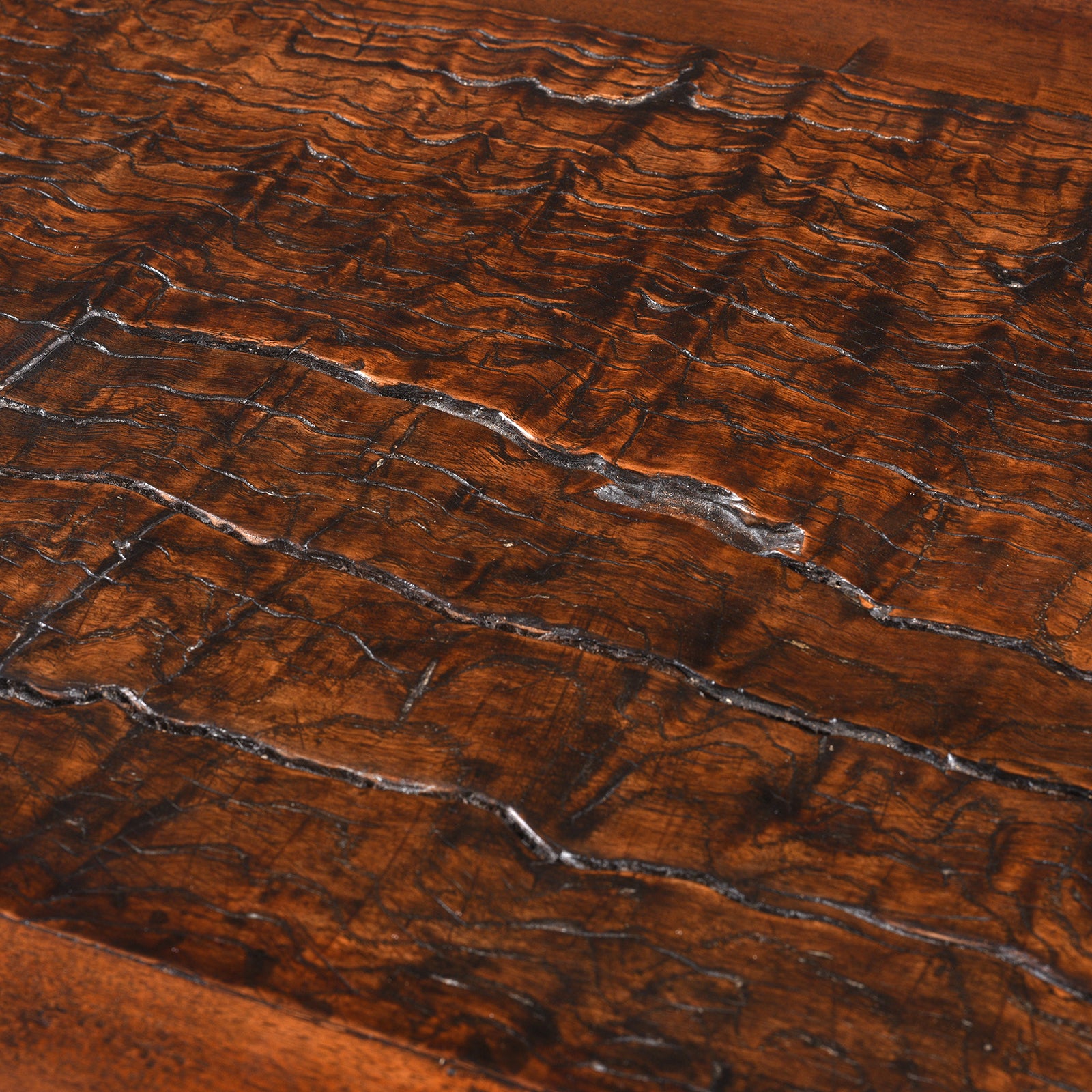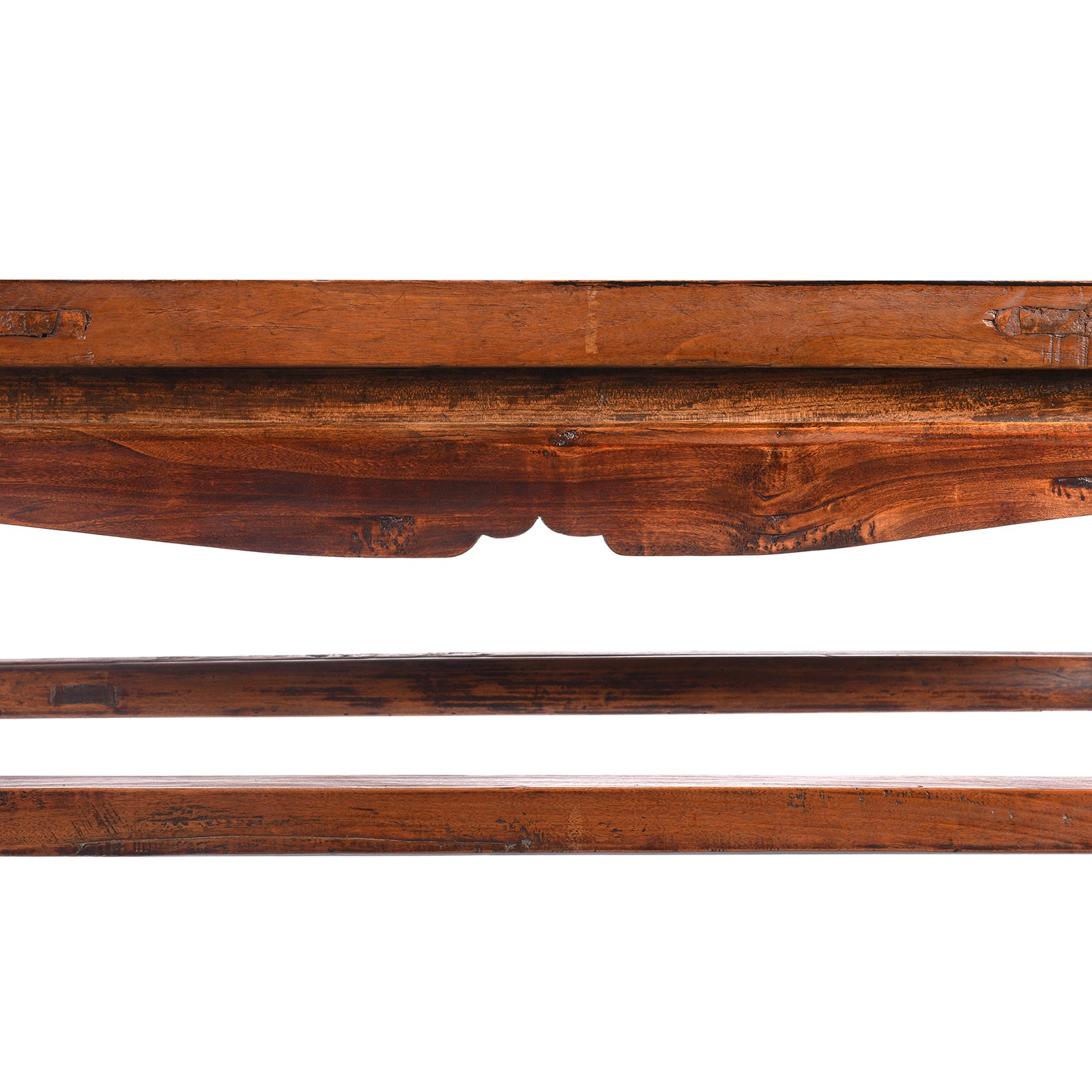 This Chinese half table is from Gansu province and was originally made around 1900. It features an exquisite cracked mulberry wood center panel. Mulberry wood has a beautiful and vivid grain, quite different from any of the other woods used for furniture construction in China. The frame and base are made from walnut wood.