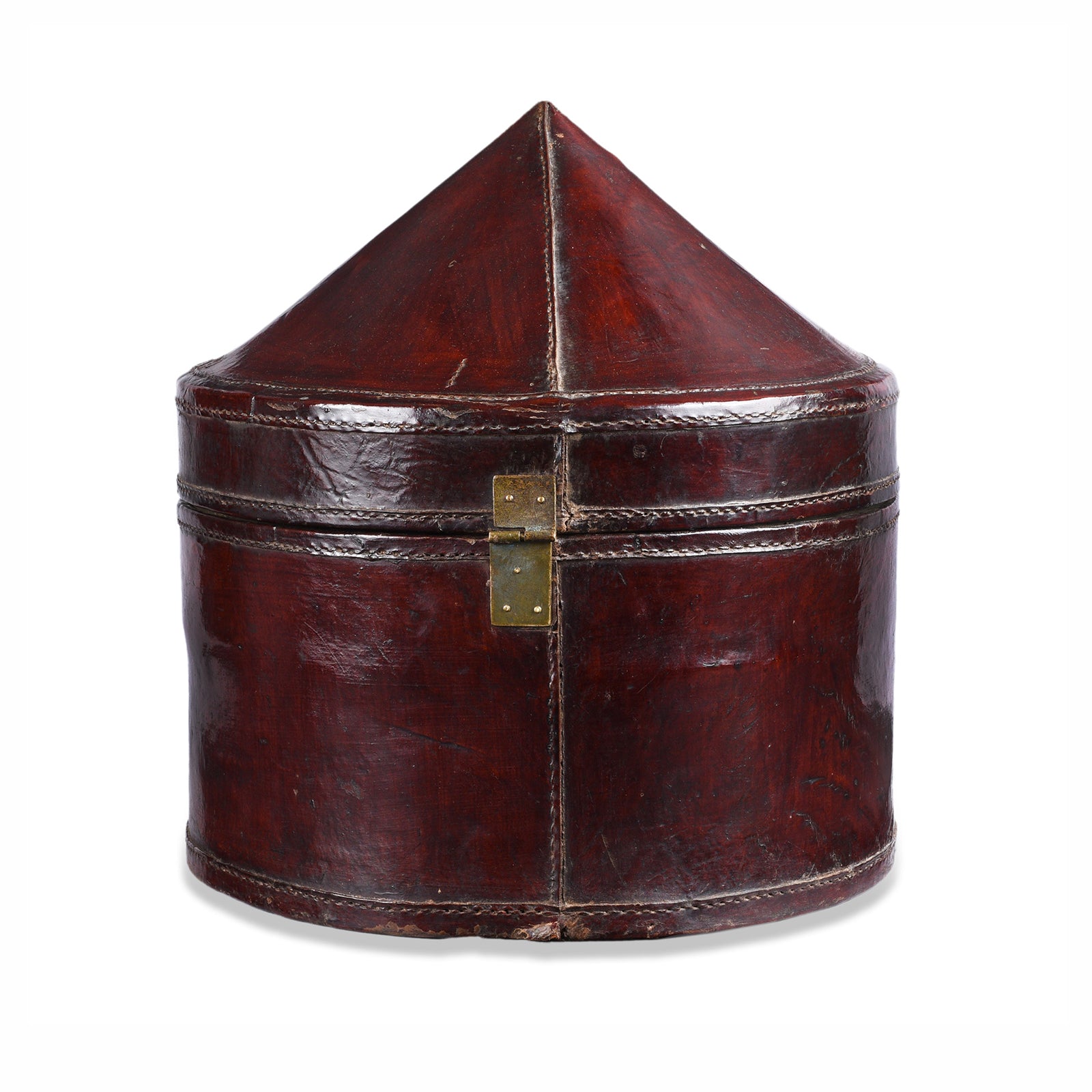 Pointed Leather Hat Box From Shanghai - 19th Century