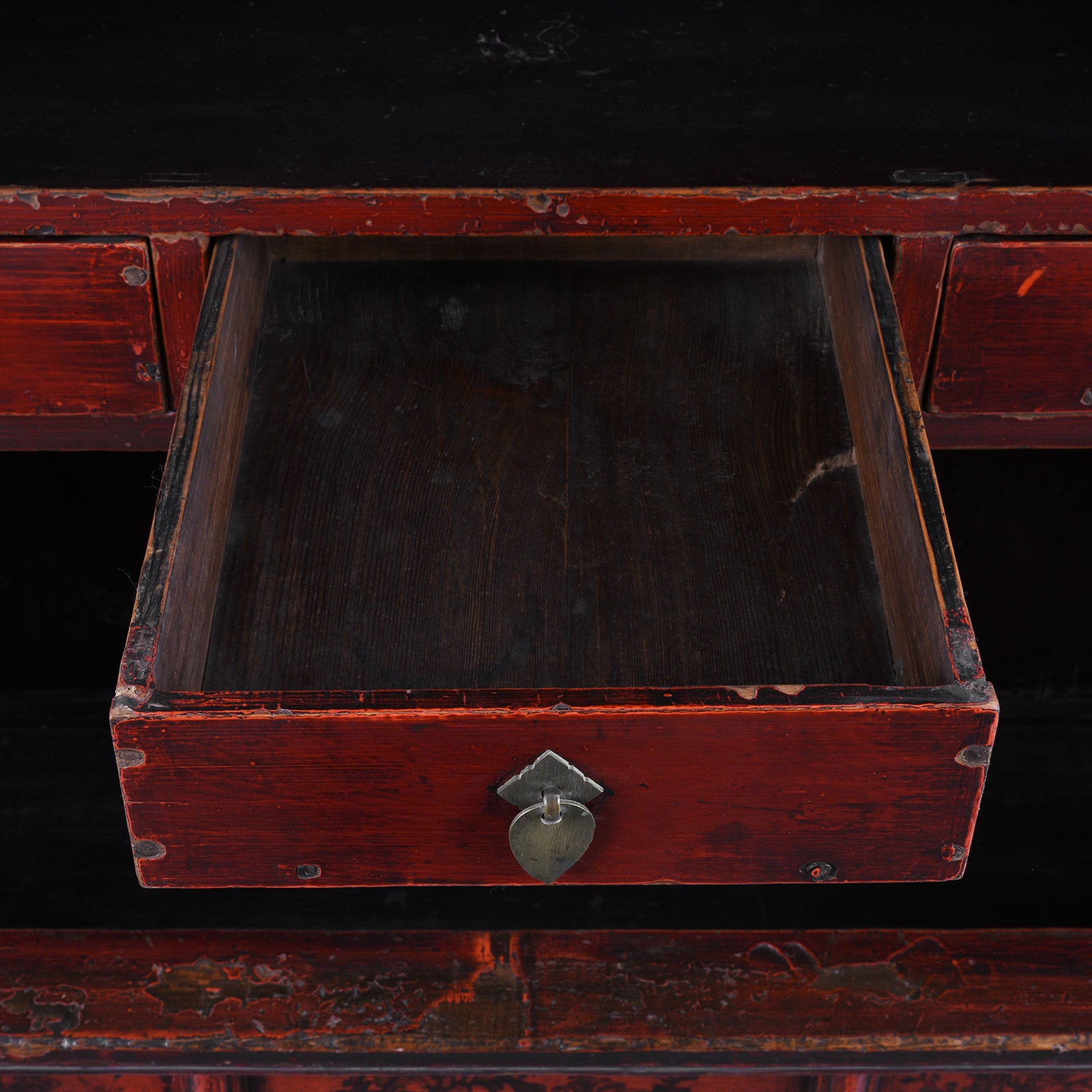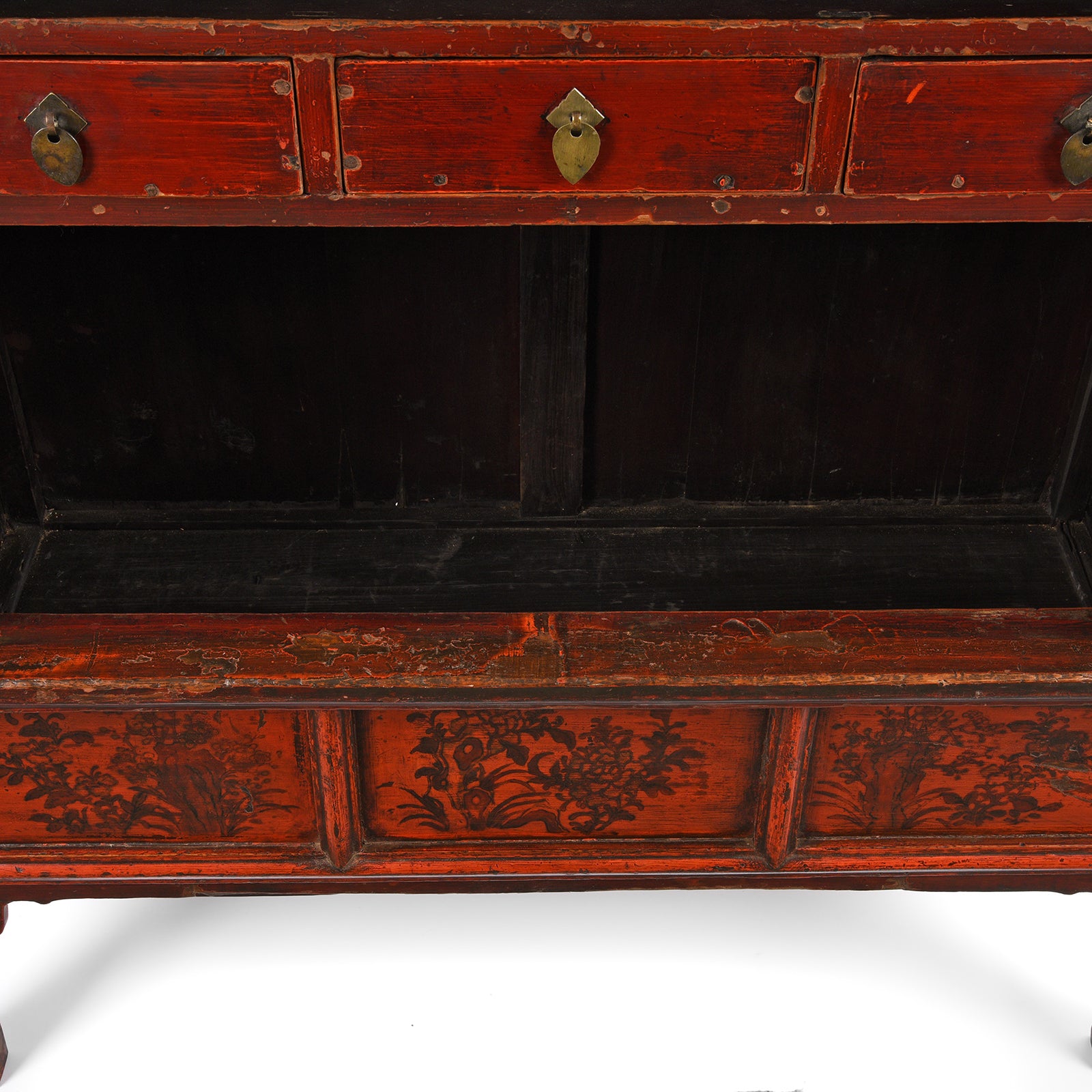Lacquer has a long history in Chinese furniture and has been used for over 2000 years. It is a resin made from the sap of the Rhus verniciflua tree, red is the most commonly used colour, black is much less common.