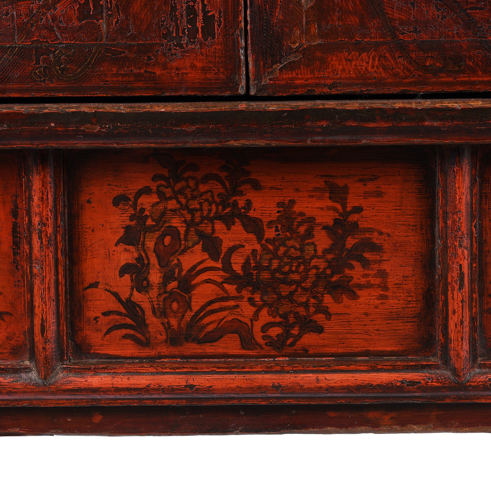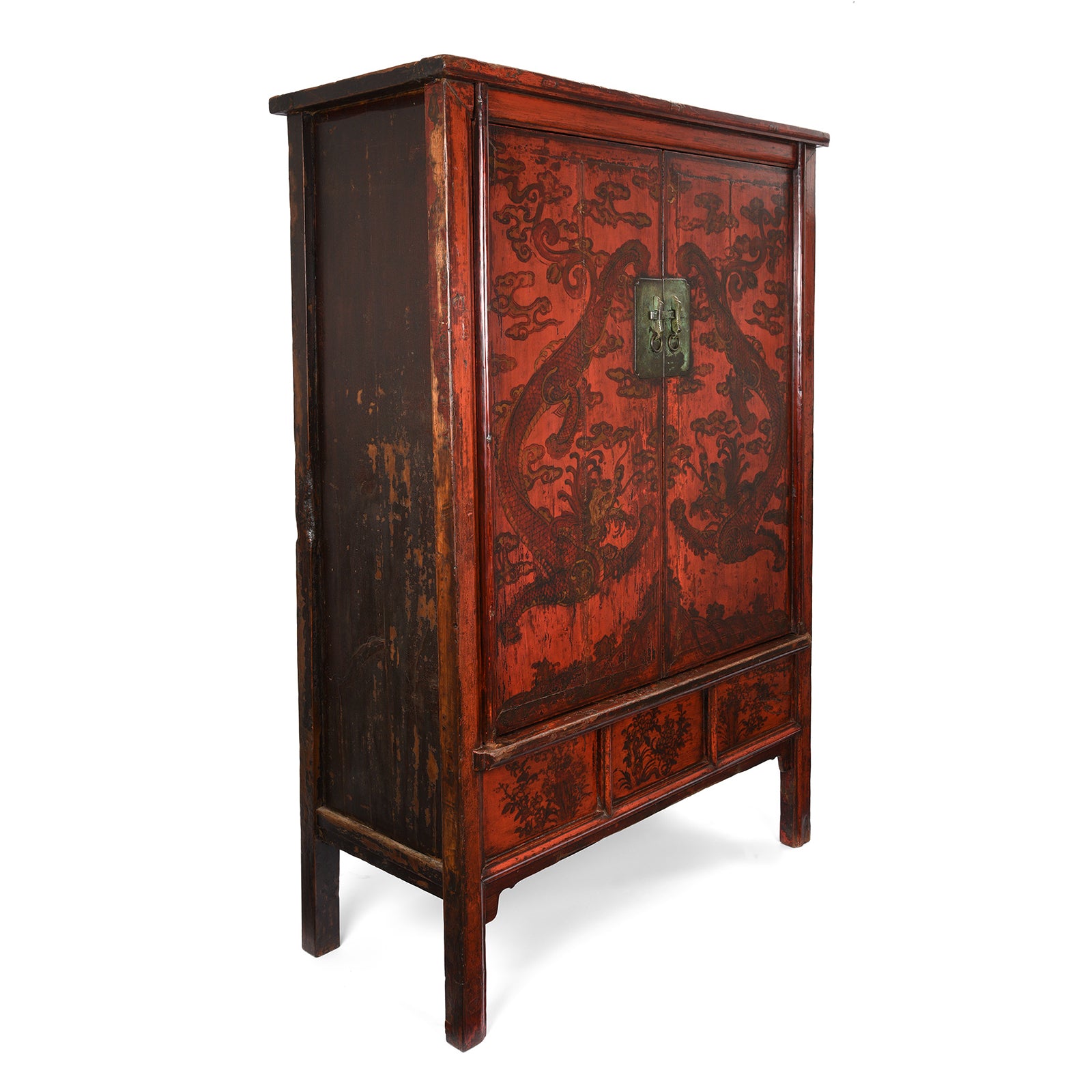 Red Lacquer Chilong Dragon Wedding Cabinet -19th Century